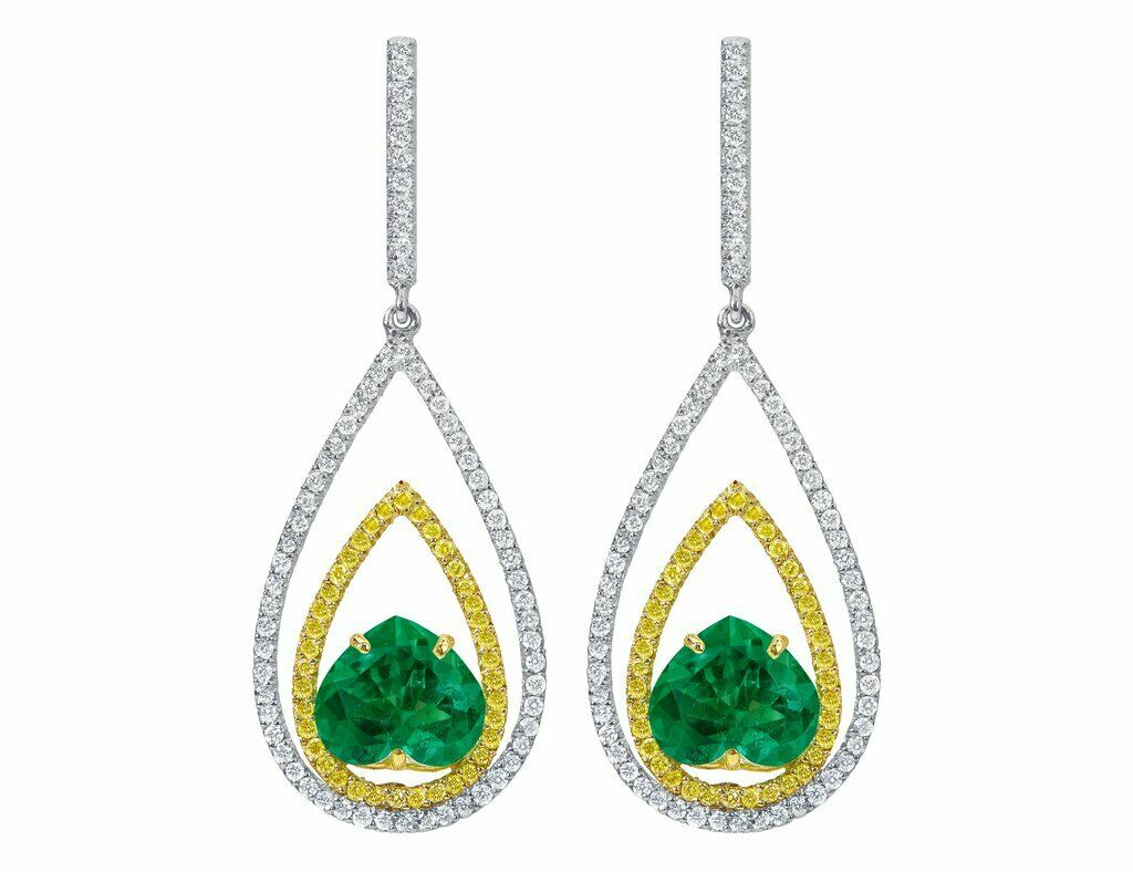 4Ct Heart Cut Green Emerald Party Tear Drop Earrings Women 14K White Gold Finish