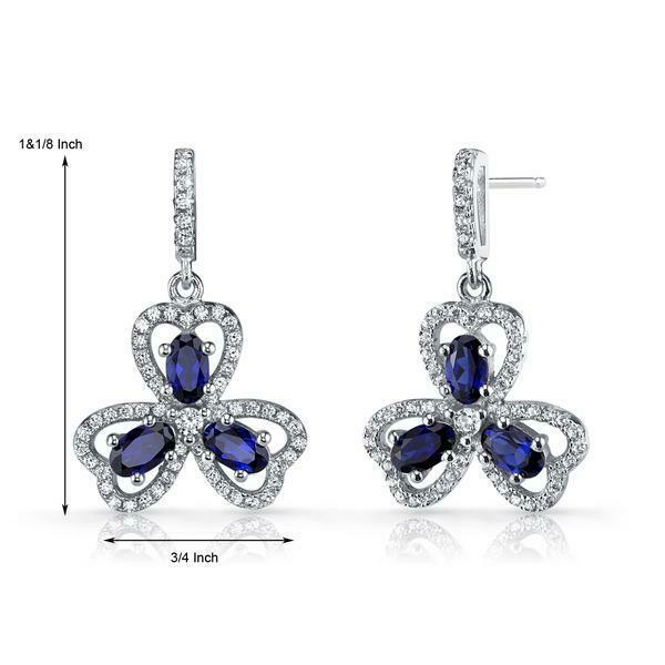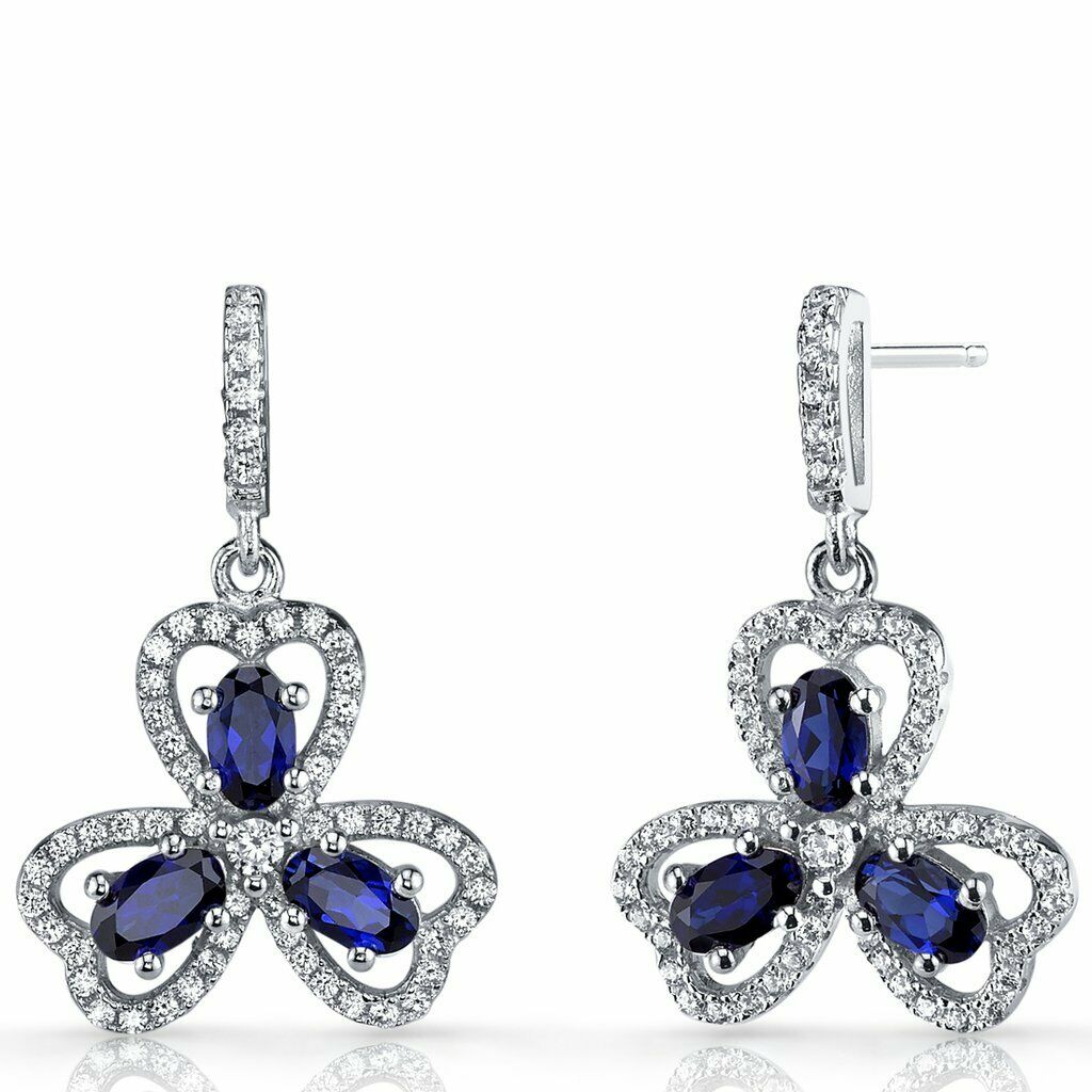 4Ct Oval Cut Blue Sapphire Diamond Clover Leaf Drop Earrings 14K White Gold Over