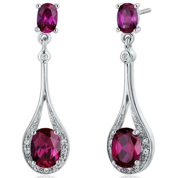 4Ct Oval Cut Pink Ruby Diamond Stylish Tear Drop Earrings 14K White Gold Finish