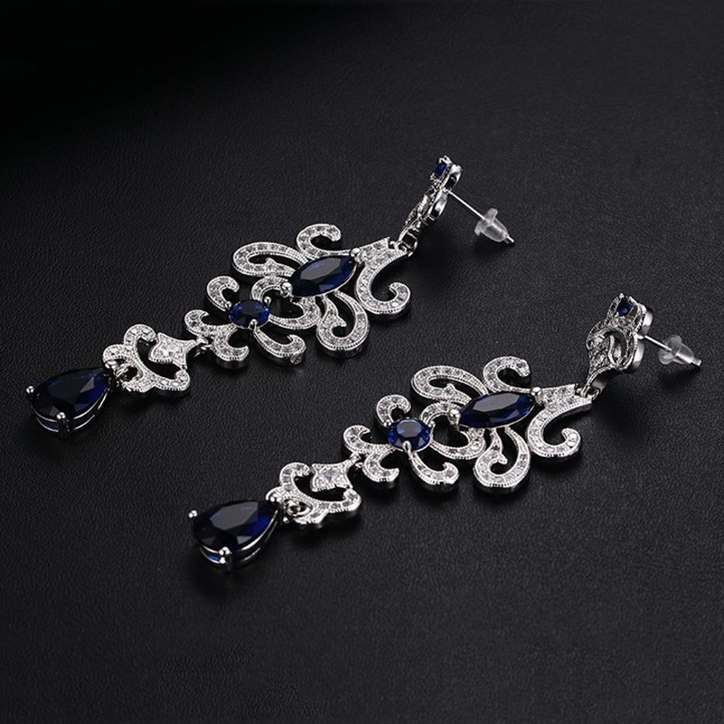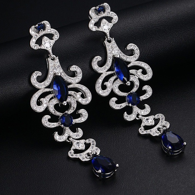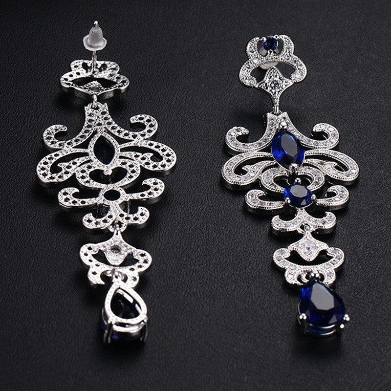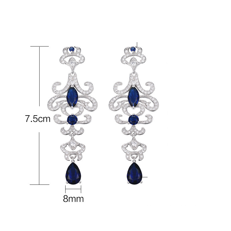 4ct Pear Cut Blue Sapphire Unique Stylish Dangle Earrings 14k White Gold Finish
