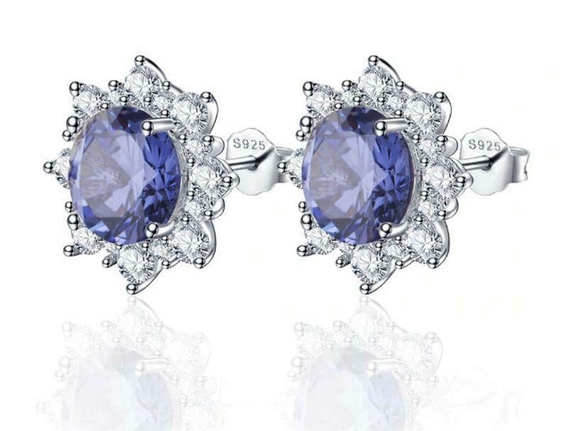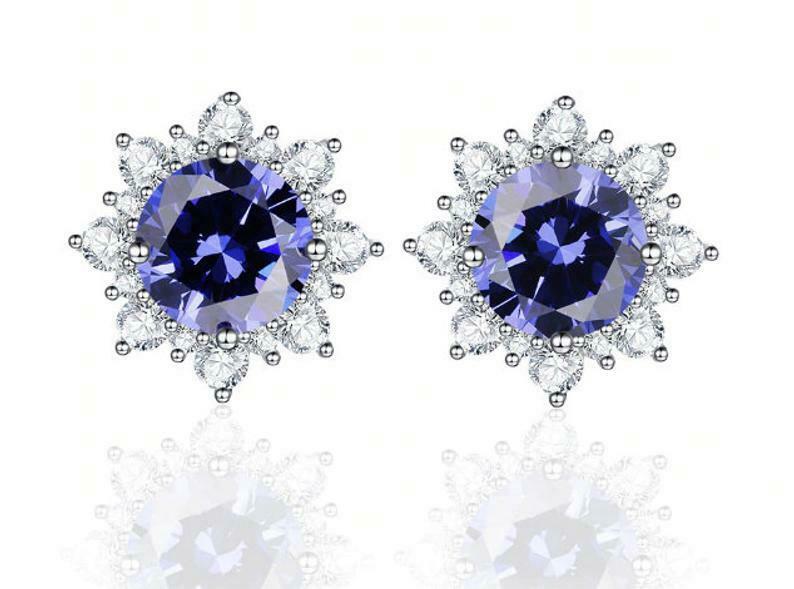 4ct Round Cut Tanzanite Diamond Halo Cocktail Stud Earrings 14K White Gold Over