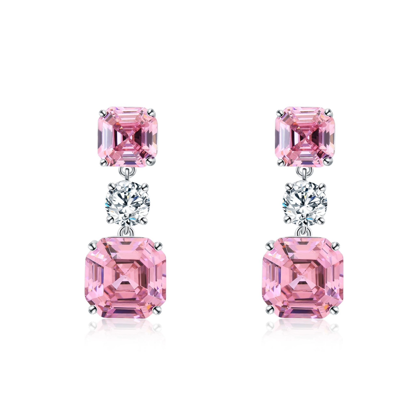 5Ct Asscher Cut Pink Sapphire Diamond Hanging Drop Earring 14K White Gold Finish