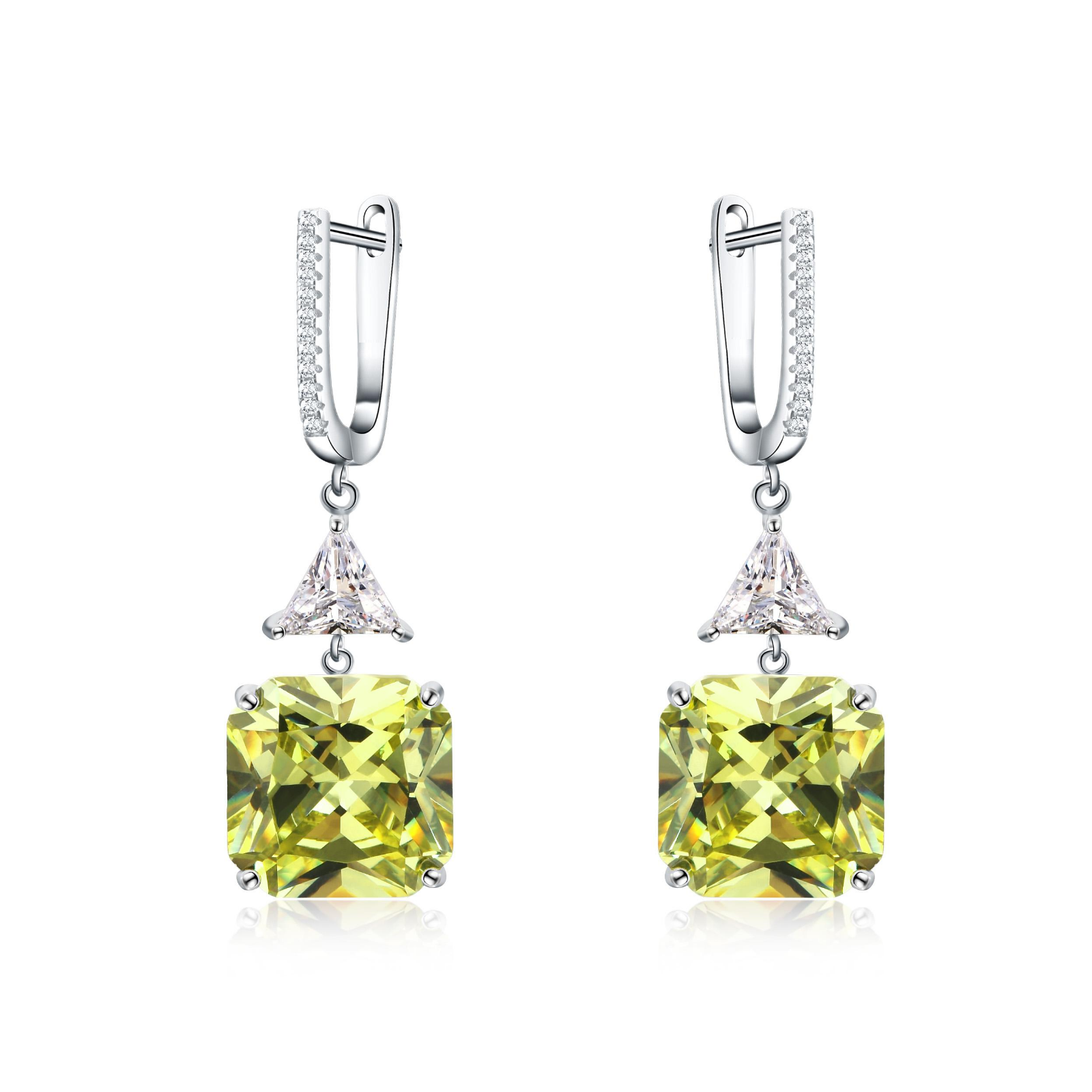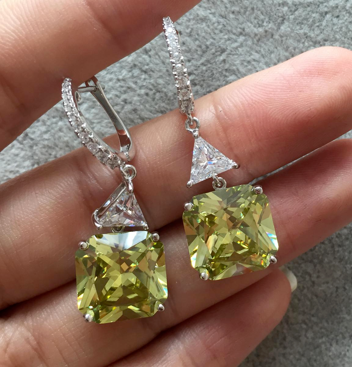 5Ct Asscher Cut Yellow Citrine Trillion Diamond Drop Earring 14K White Gold Over
