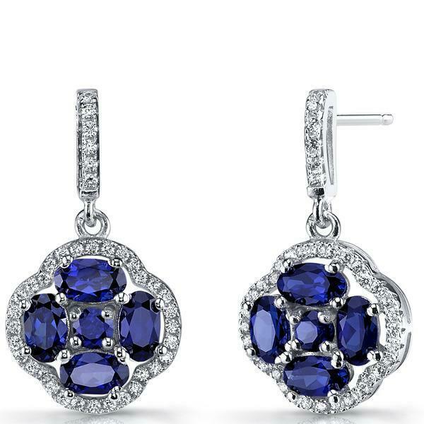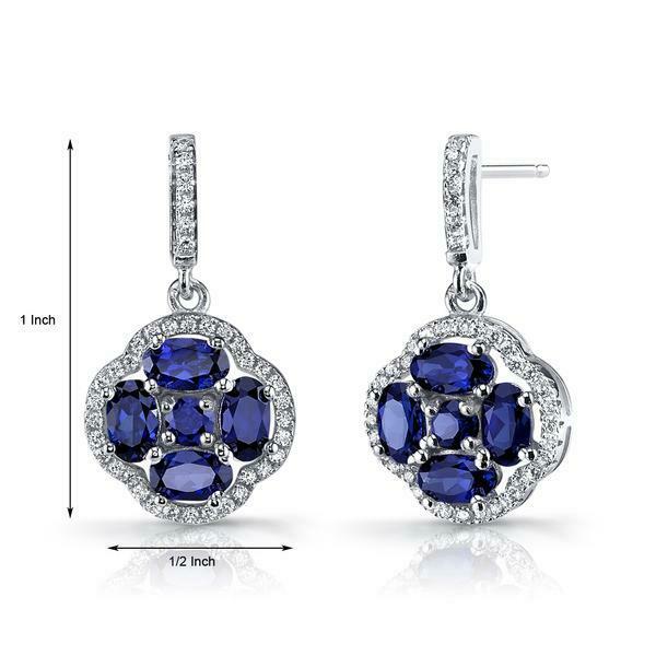 5Ct Oval Cut Blue Sapphire Stylish Diamond Halo Drop Earring 14K White Gold Over