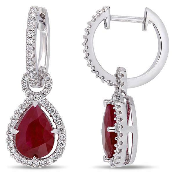 5Ct Pear Cut Pink Ruby Diamond Halo Elegant Drop Earrings 14K White Gold Finish