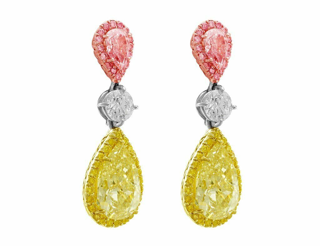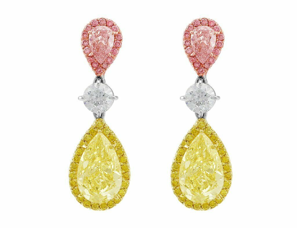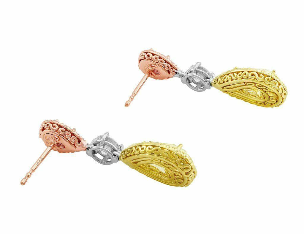 5Ct Pear Cut Yellow Pink Sapphire Cocktail Drop Earrings 14K 3 Tone Gold Finish