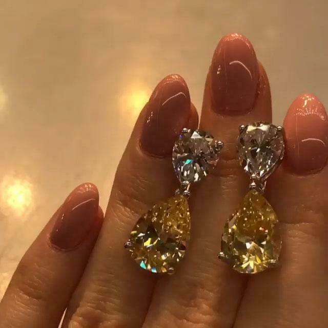 5Ct Pear Cut Yellow Sapphire Diamond Tear Water Drop Earring 14K White Gold Over
