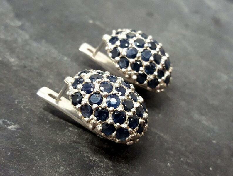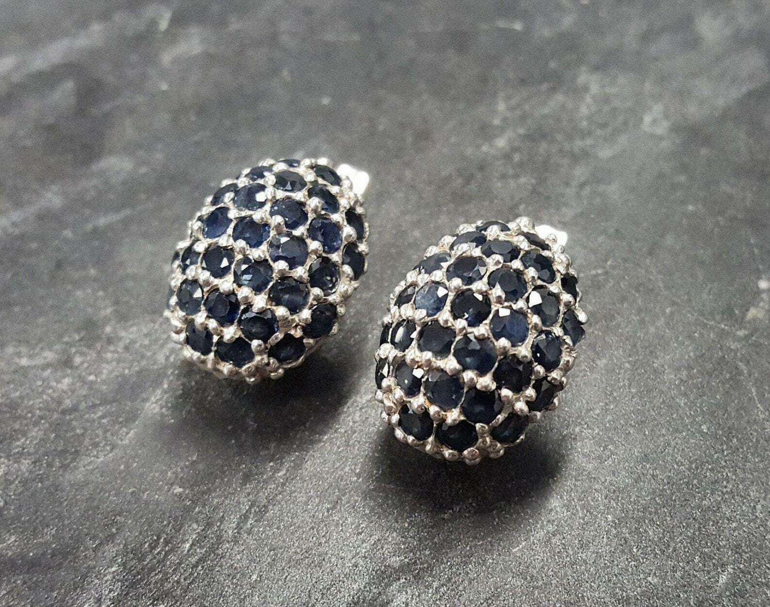 5ct Stud Earrings Round Cut Blue Sapphire Cluster Dome 14k White Gold Finish