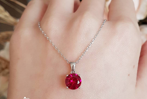 2ct Round Cut Pink Ruby Pendant with Chain Solitaire 14k White Gold Finish