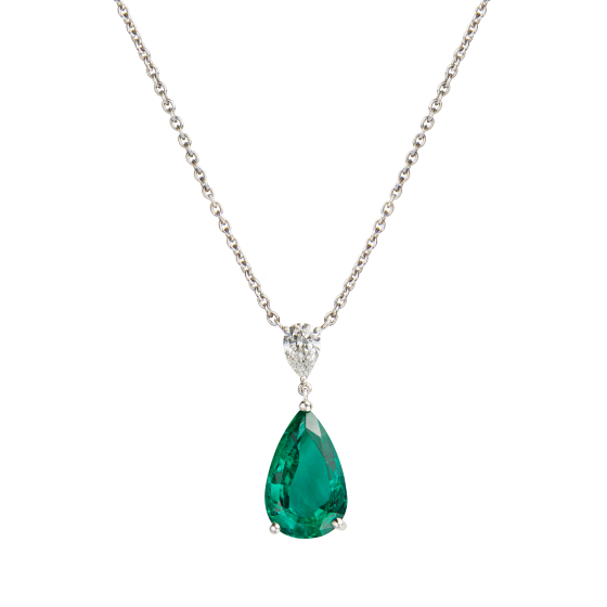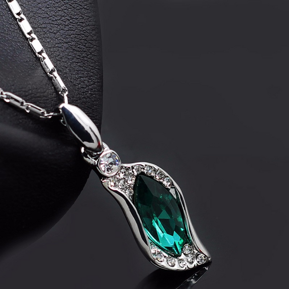 2.5Ct Pear Cut Green Emerald Water Drop Pendant 18K White Gold Finish WITH CHAIN