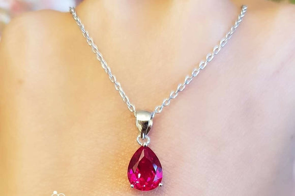 1.5ct Pear Pink Ruby Pendant with Chain Teardrop Solitaire 14k White Gold Finish