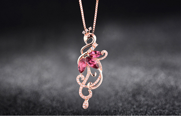 2ct Marquise Cut Pink Ruby Peacock Design Pendant 14k Rose Gold Finish NO CHAIN