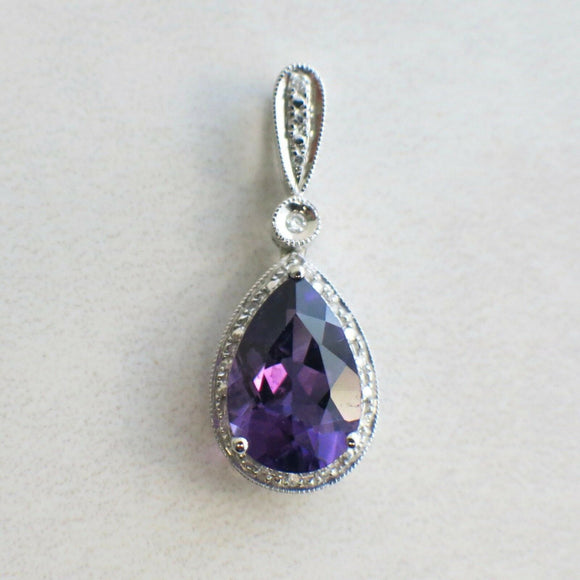 2ct Pear Cut Purple Amethyst Water Drop Pendant 14k White Gold Finish NO CHAIN