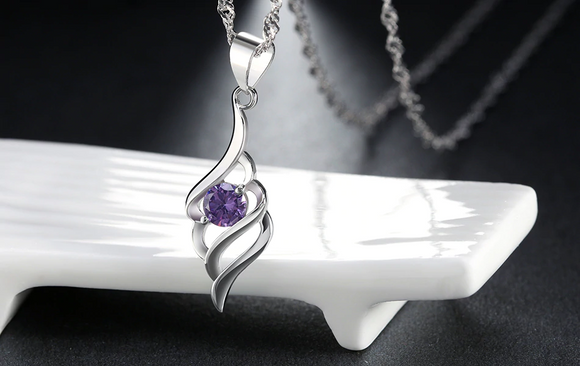 0.5ct Round Cut Purple Amethyst Pendant Angel Wing 14k WhiteGold Finish NO CHAIN