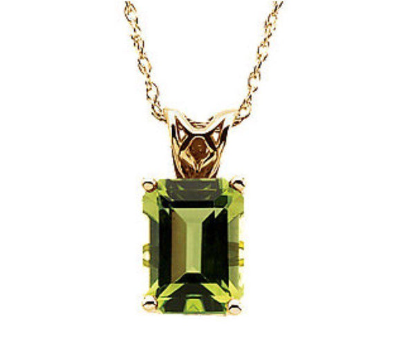 1ct Emerald Cut Green Peridot Solitaire Pendant 14k Yellow Gold Finish NO CHAIN