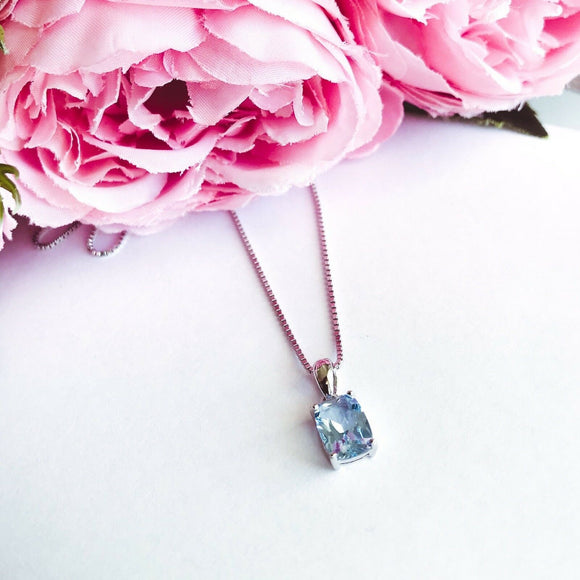 1Ct Radiant Cut Blue Aquamarine Solitaire Pendant 18K White Gold Finish NO CHAIN