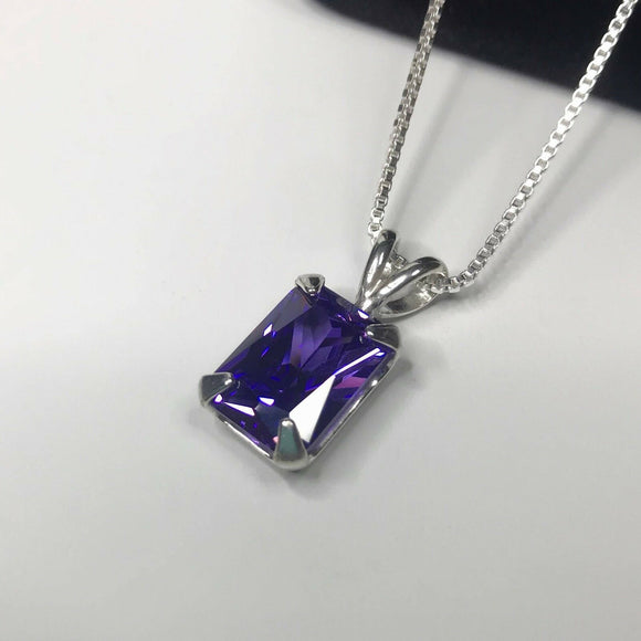 2ct Emerald Cut Purple Amethyst Solitaire Pendant 14k White Gold Finish NO CHAIN