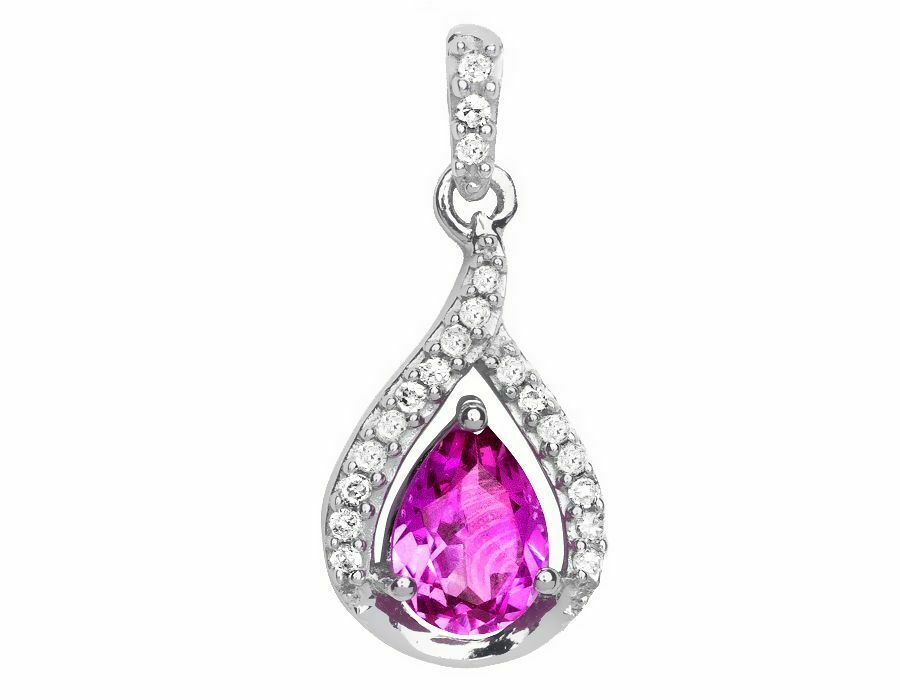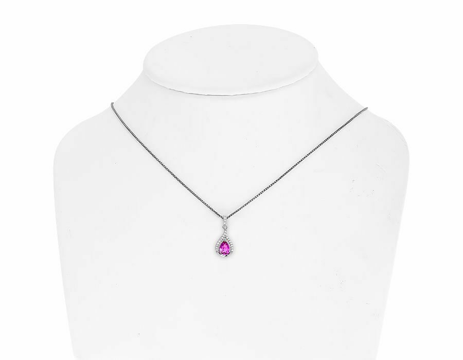 0.15ct Pear Cut Pink Sapphire Pendant Teardrop 14k White Gold Finish NO CHAIN