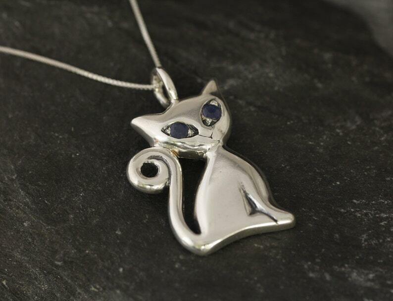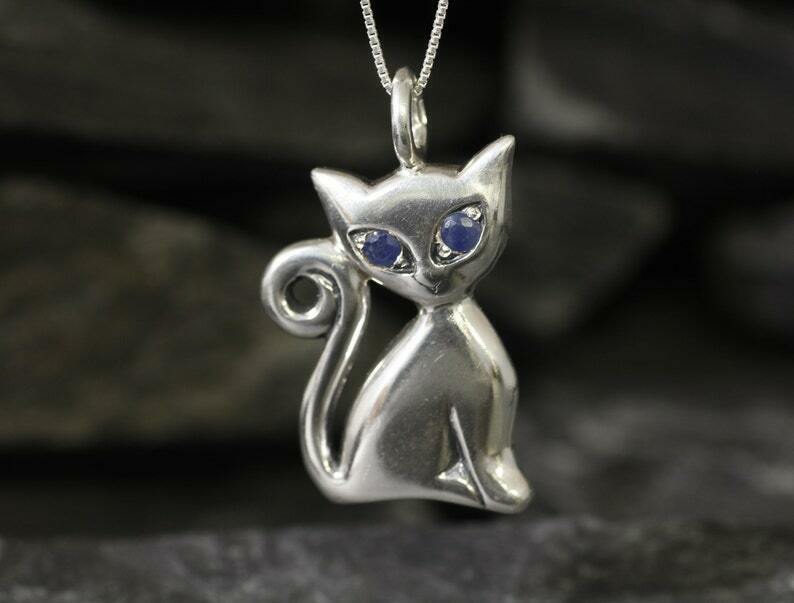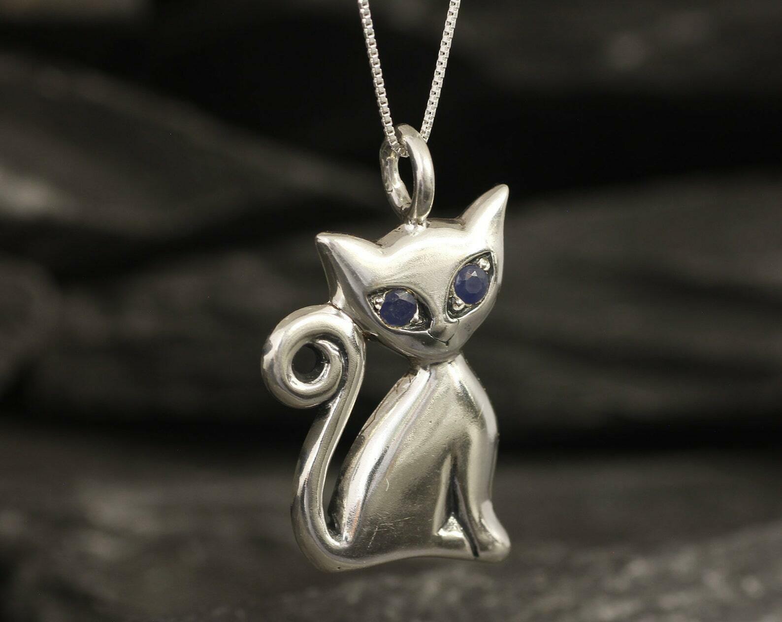 0.5ct Blue Sapphire Pendant Round Cut Cat Kitten 14k White Gold Finish NO CHAIN
