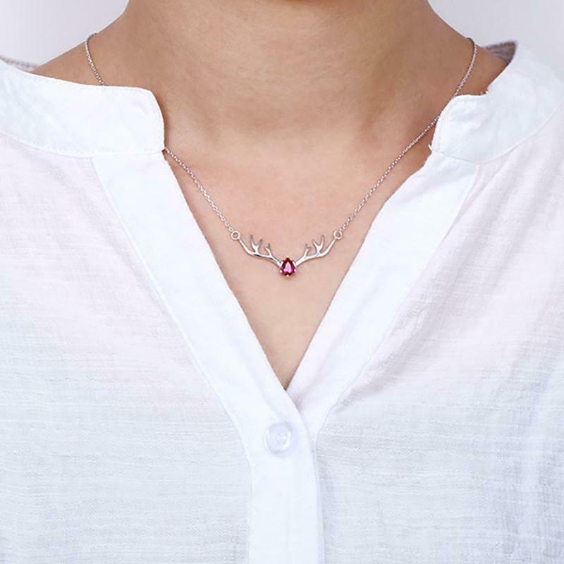 0.5Ct Pear Cut Pink Ruby Deer Antler Pendant 14K White Gold Finish WITH CHAIN