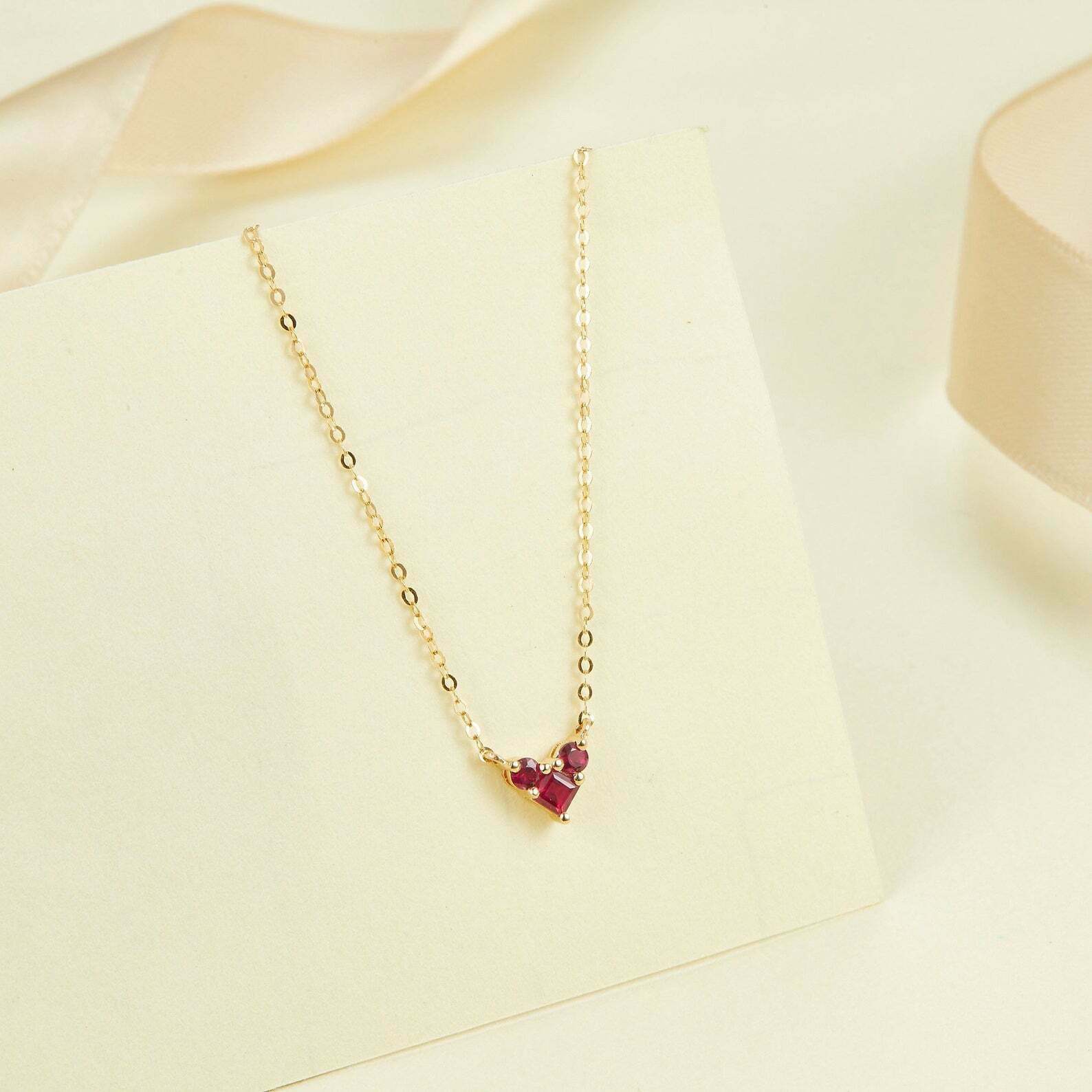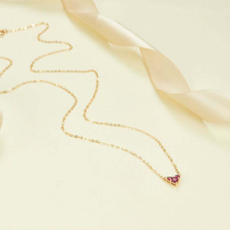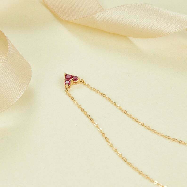 0.5ct Princess Cut Pink Ruby Three Stone Pendant with Chain 14k Yellow Gold Over