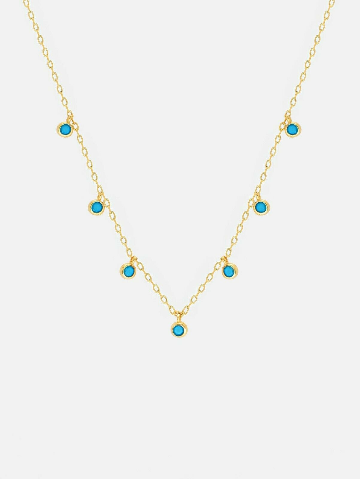 0.6ct Blue Turquoise Pendant Chain Round Cut Bezel Set 14k Yellow Gold Finish