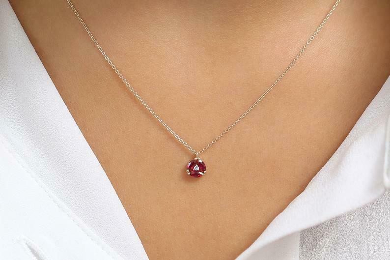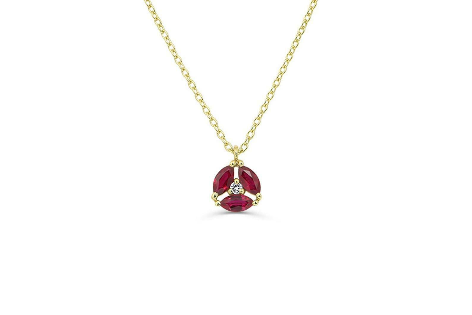 0.7ct Marquise Cut Pink Ruby Solitaire Cluster Pendant Chain 14k Yellow Gold Over