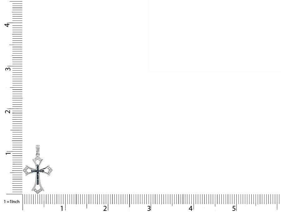 1.2ct Round Cut Blue Sapphire Pendant Holy Cross 14k White Gold Finish NO CHAIN