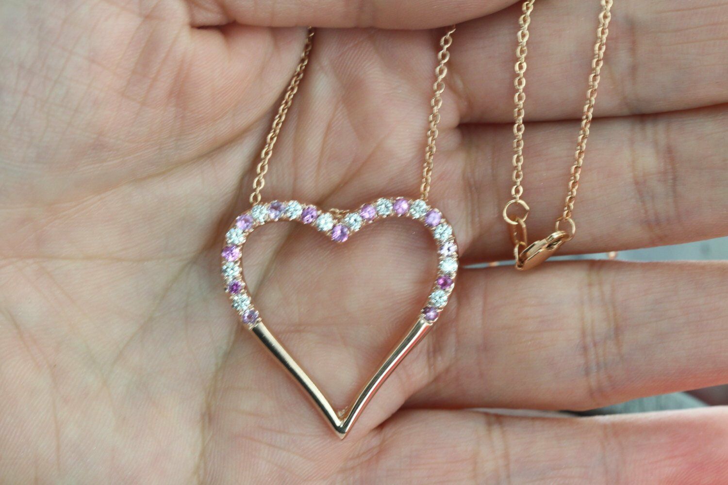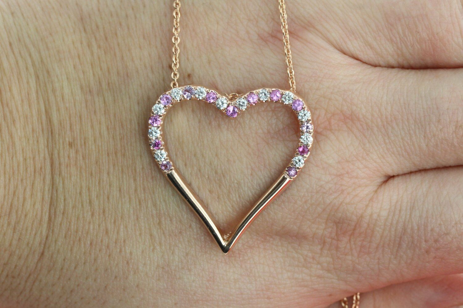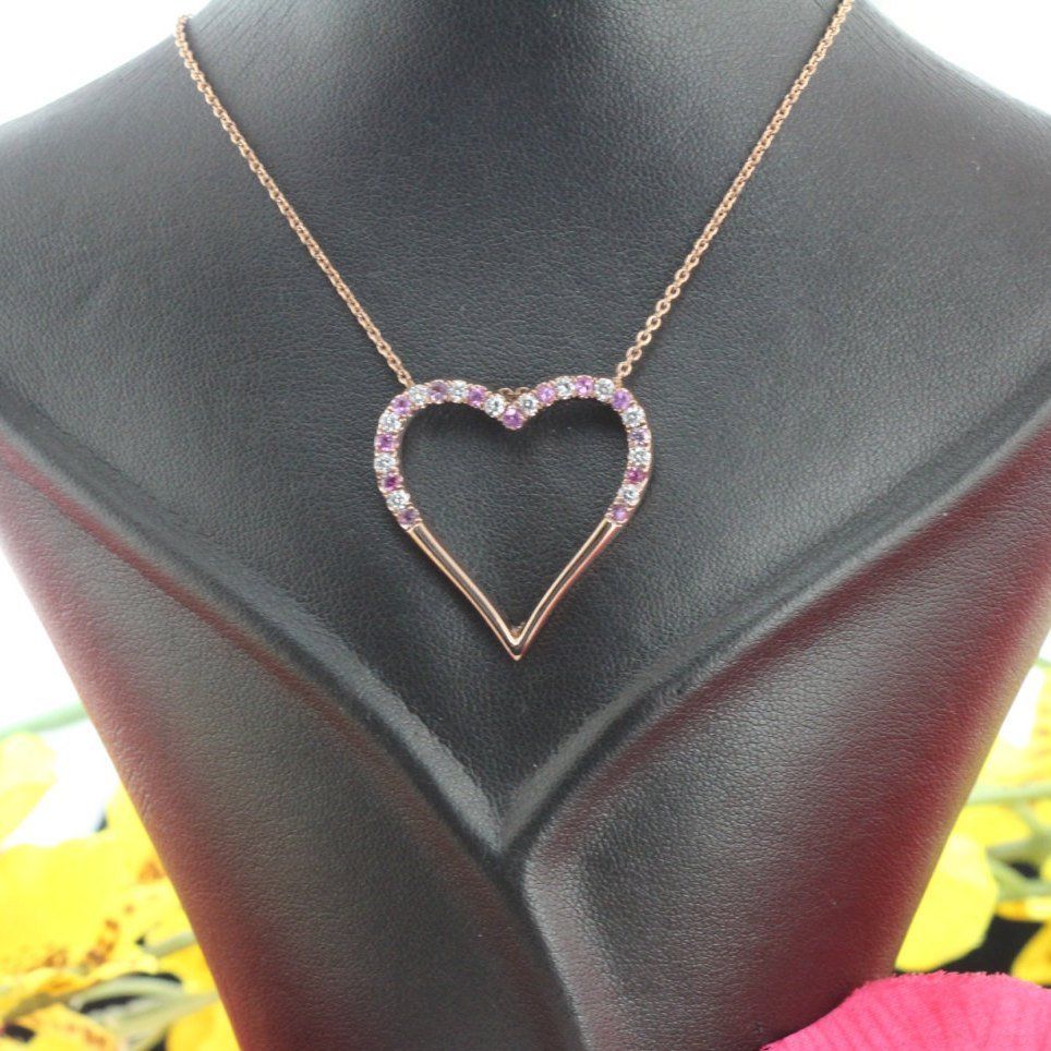 1.3ct Round Cut Pink Sapphire Open Heart Pendant 14k Rose Gold Finish NO CHAIN