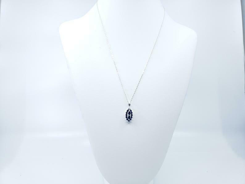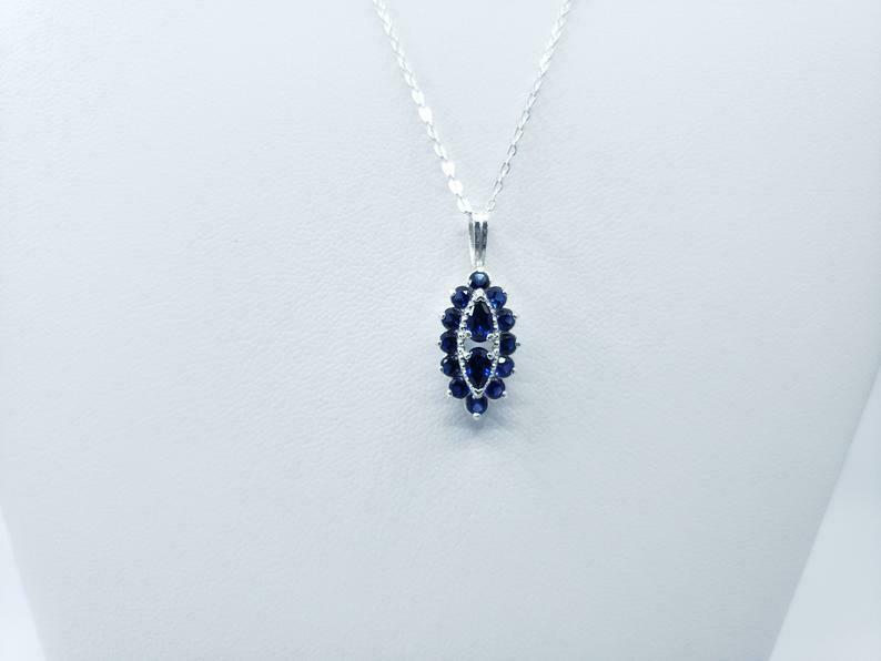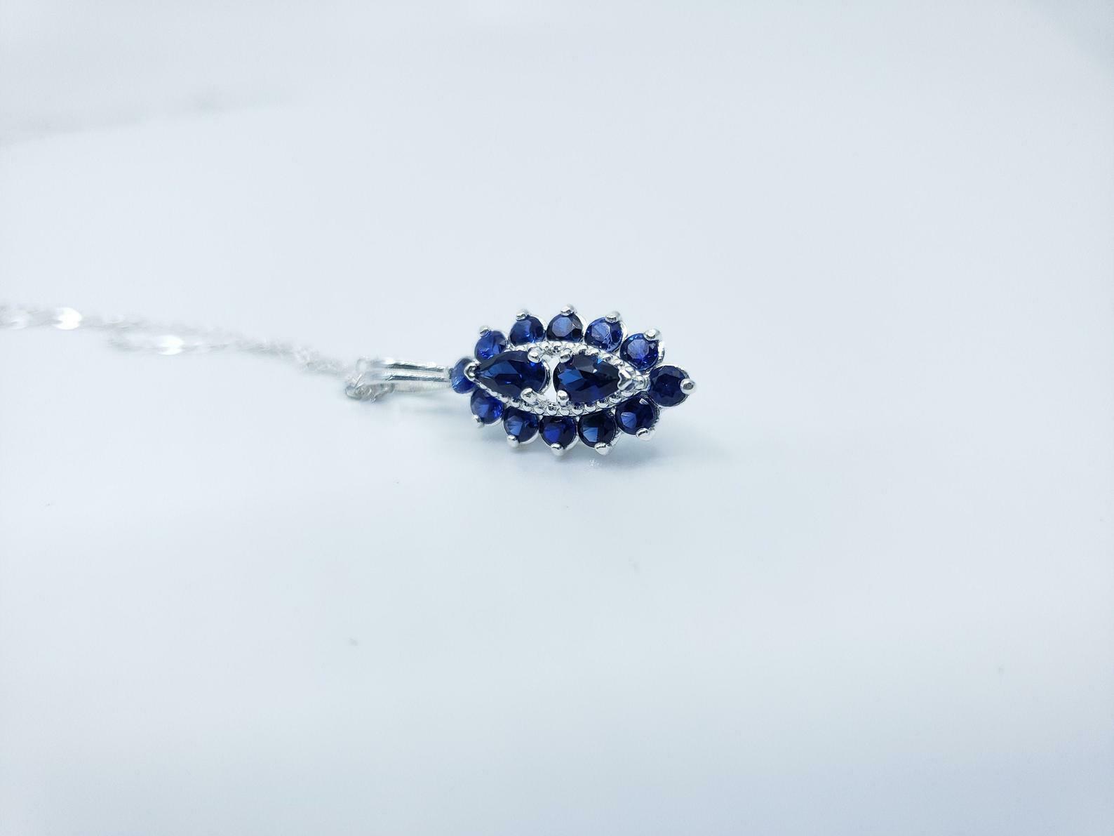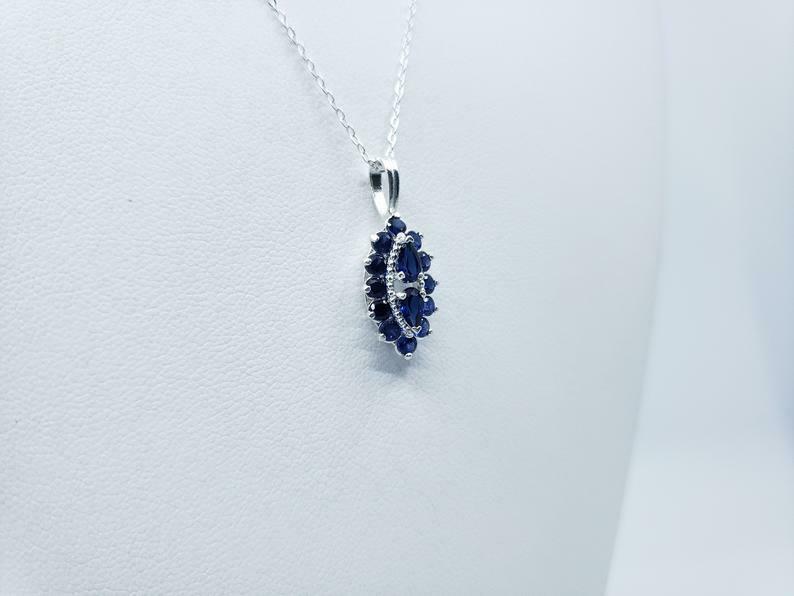 1.4ct Blue Sapphire Pendant with Chain Pear Cut Art Deco 14k White Gold Finish