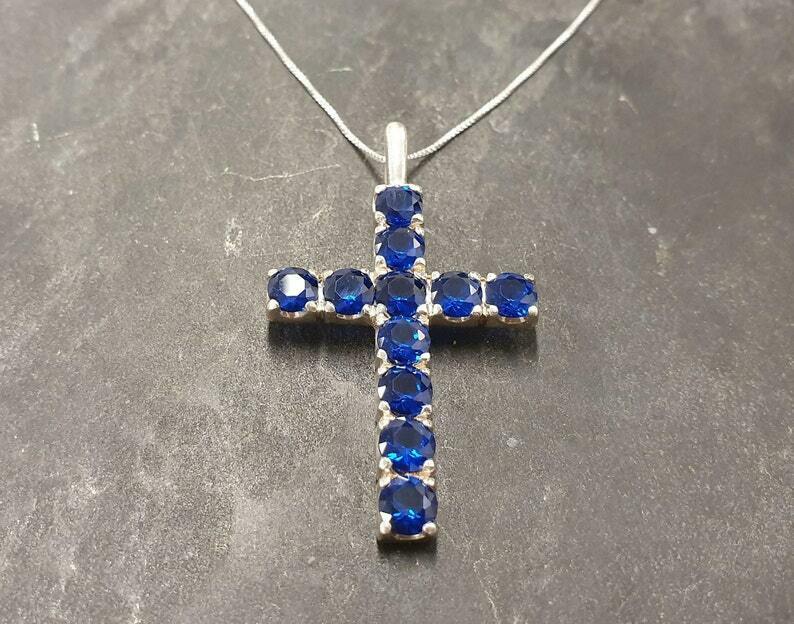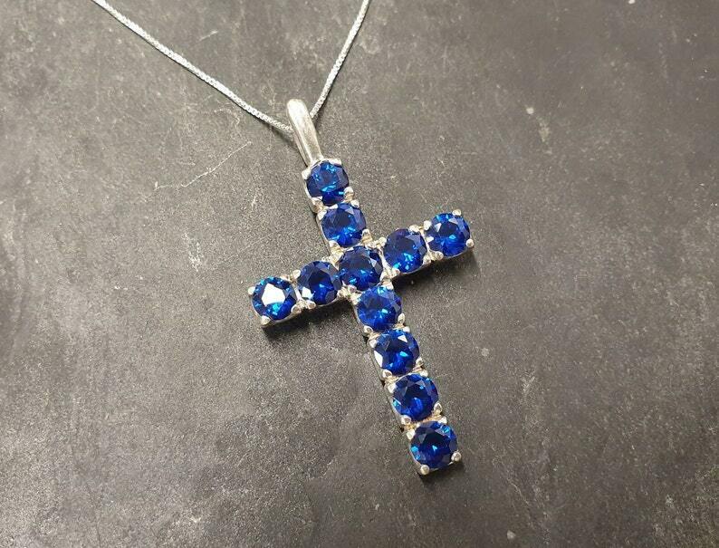 1.55ct Blue Sapphire Pendant Round Cut Holy Cross 14k White Gold Finish NO CHAIN