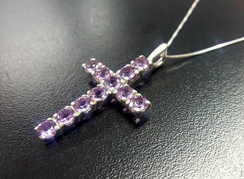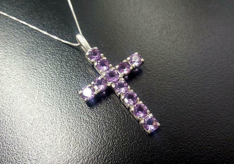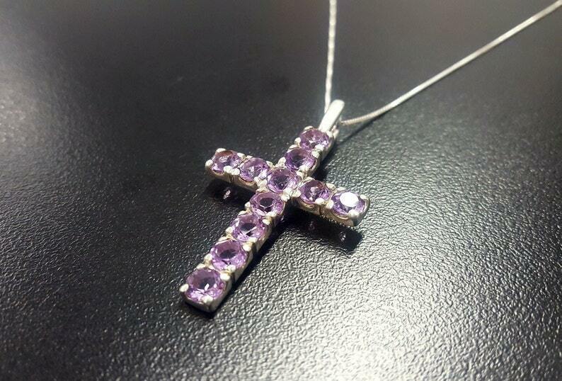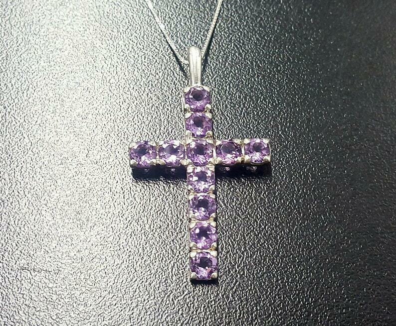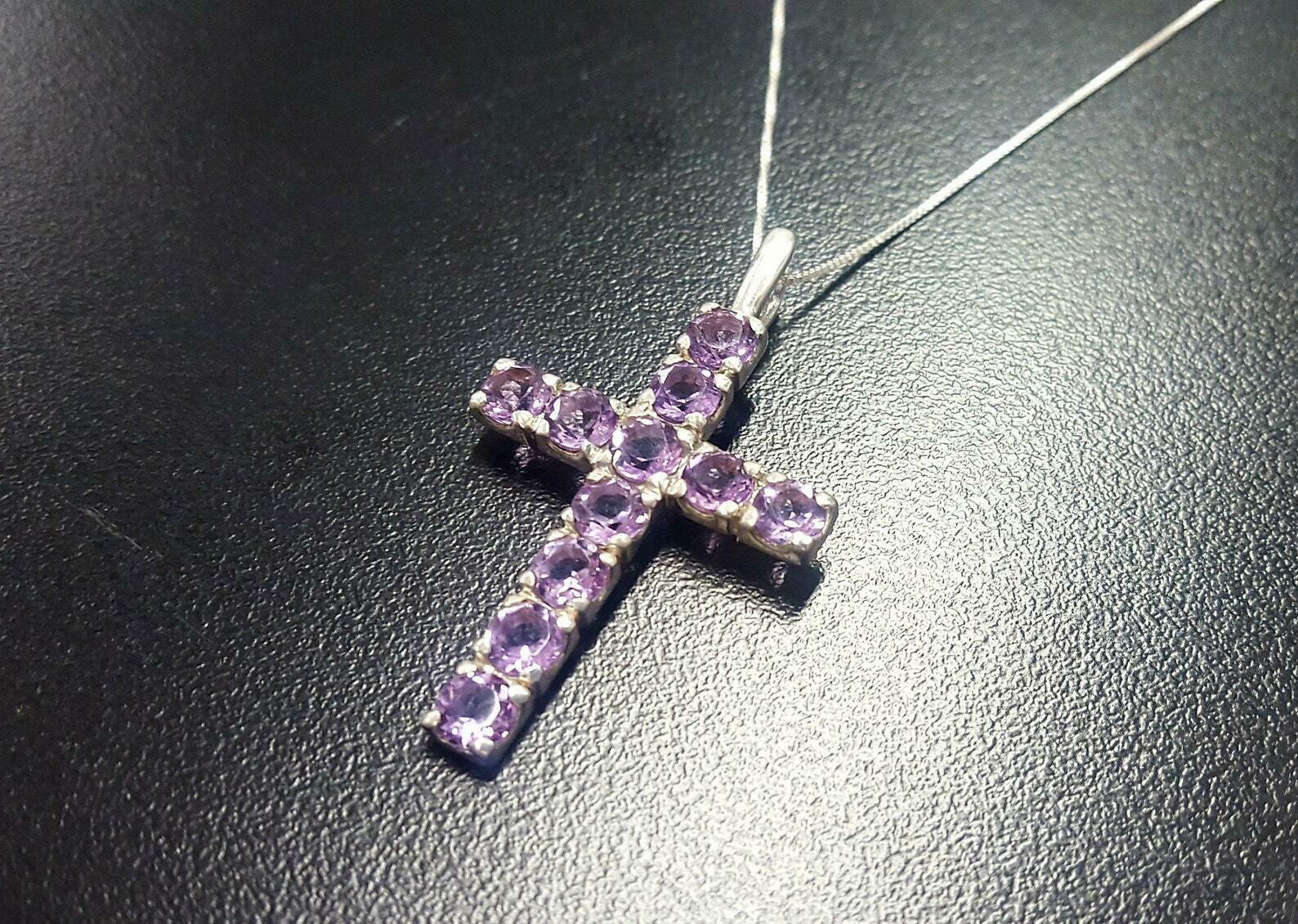 1.55ct Purple Amethyst Pendant Round Cut Holy Cross 14k White Gold Over NO CHAIN
