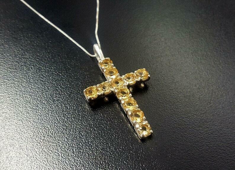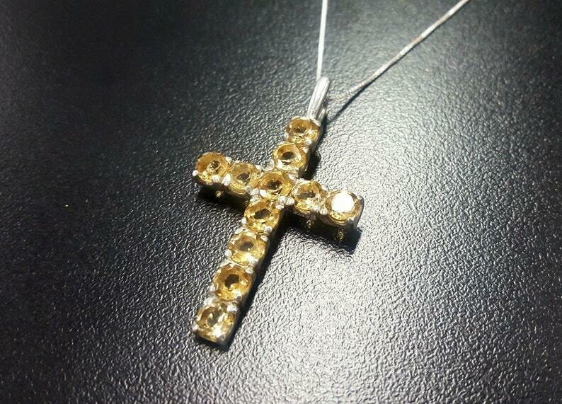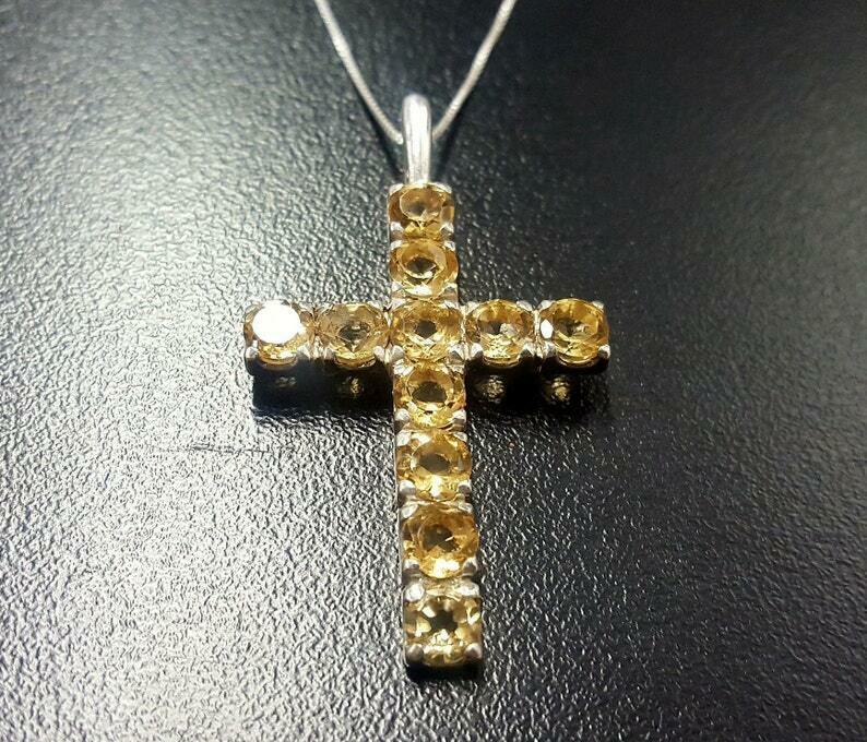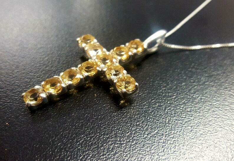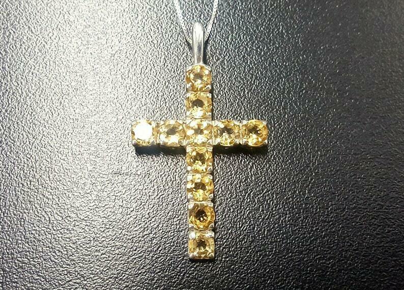 1.55ct Yellow Citrine Pendant Round Cut Holy Cross 14k WhiteGold Finish NO CHAIN