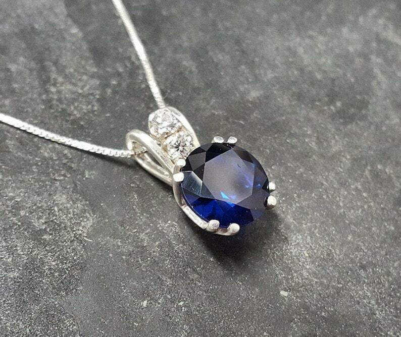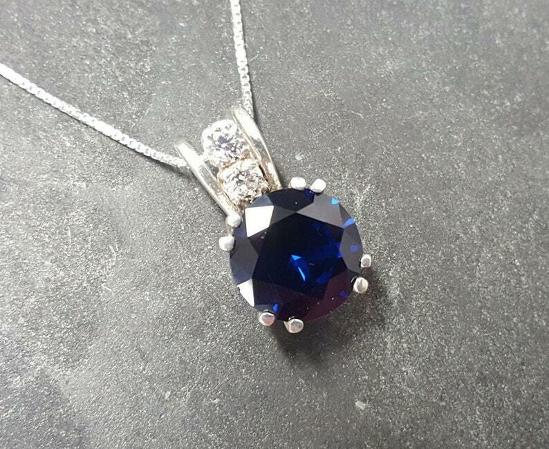 1.5ct Blue Sapphire Pendant Round Cut Solitaire 14k White Gold Finish NO CHAIN