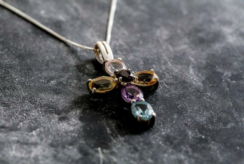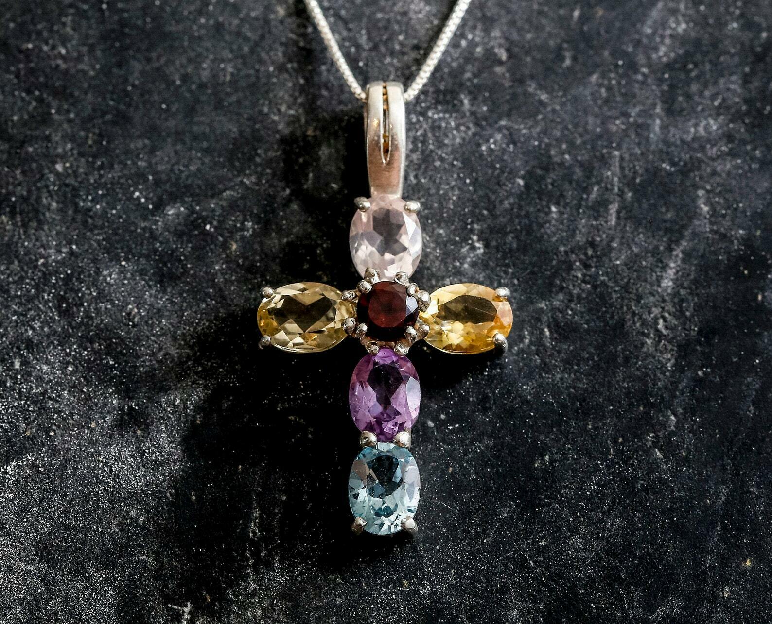 1.5ct Multi Stone Pendant Oval Cut Christ Cross 14k White Gold Finish NO CHAIN