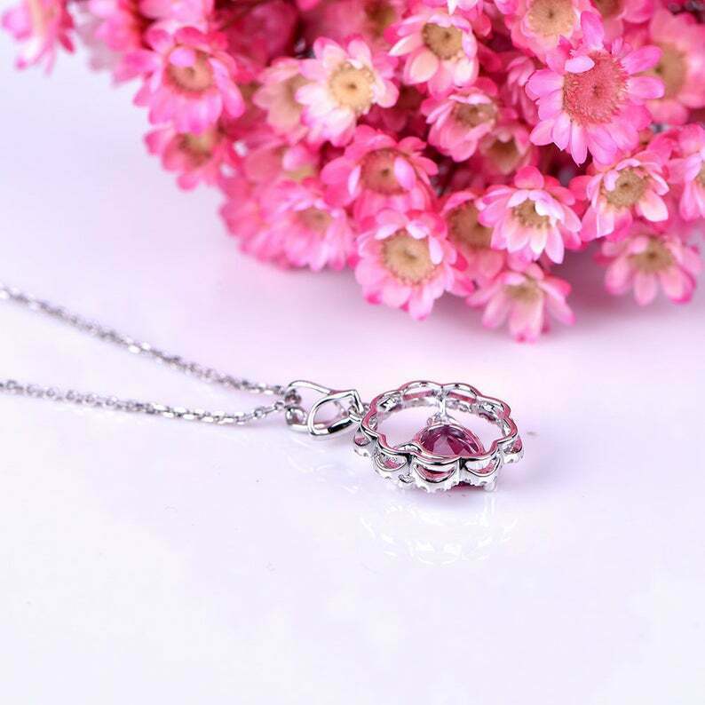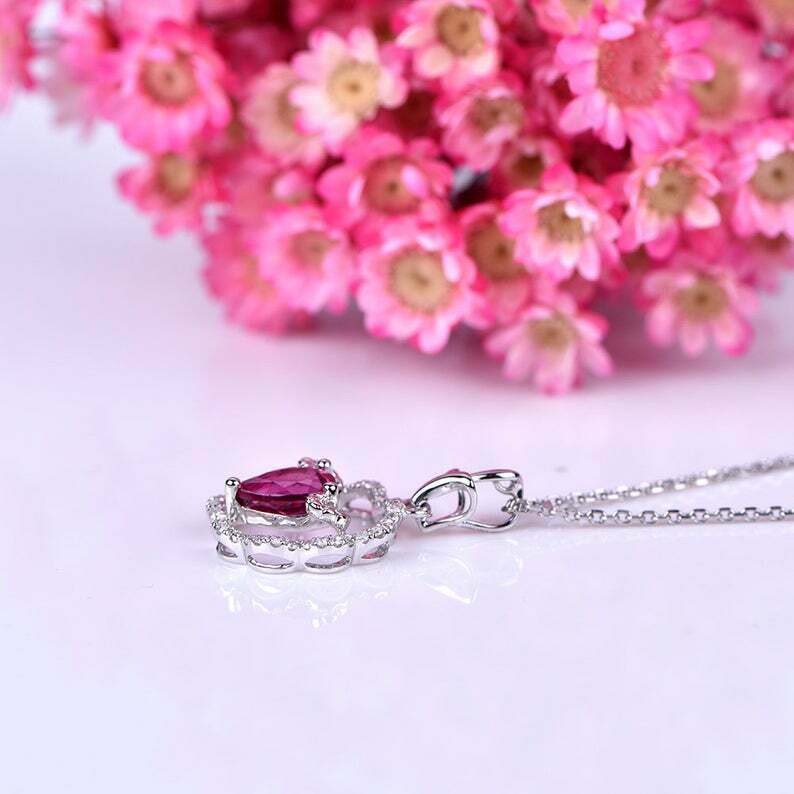 1.5ct Pear Cut Pink Ruby Pendant with Chain Unique Design 14k White Gold Finish