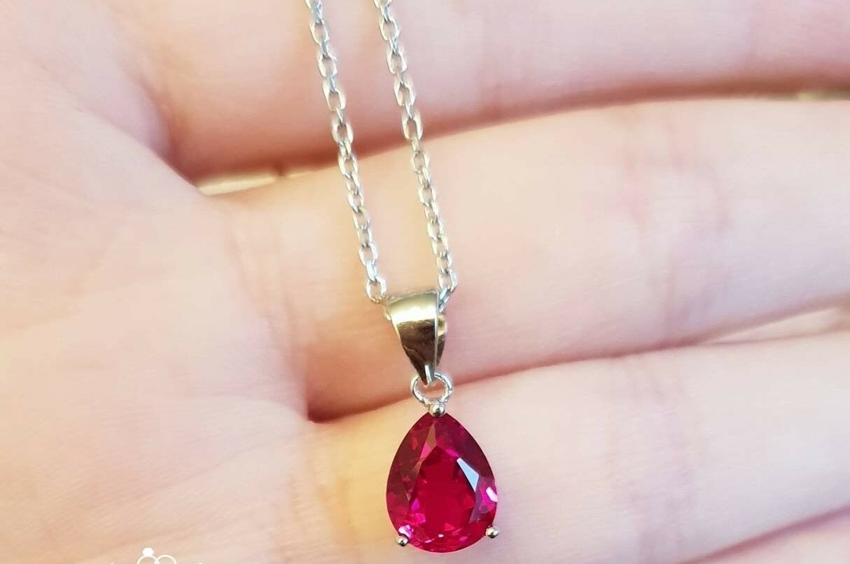 1.5ct Pear Pink Ruby Pendant with Chain Teardrop Solitaire 14k White Gold Finish
