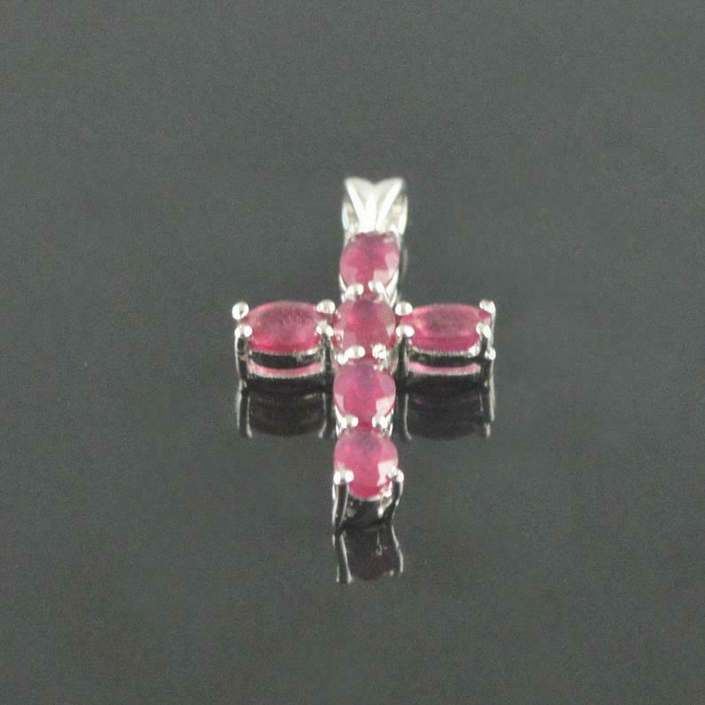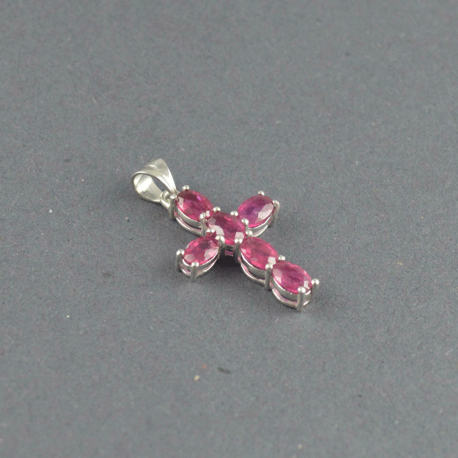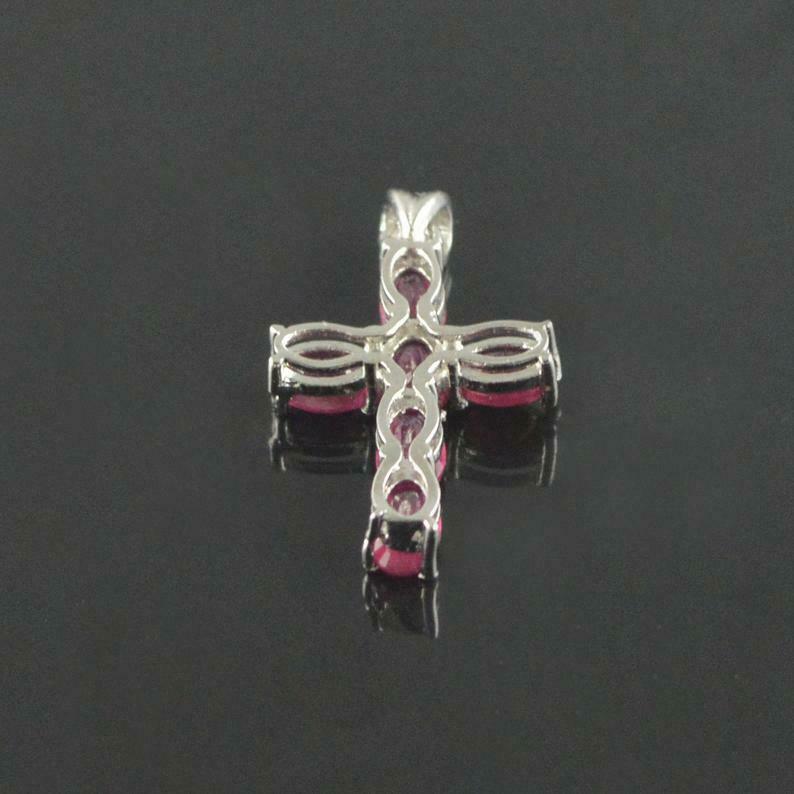 1.5ct Pink Ruby Pendant Oval Cut Christ Cross 14k White Gold Finish NO CHAIN