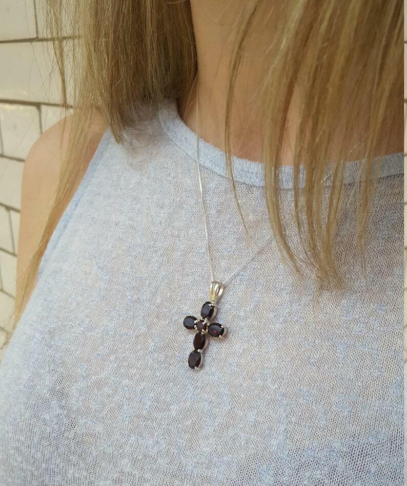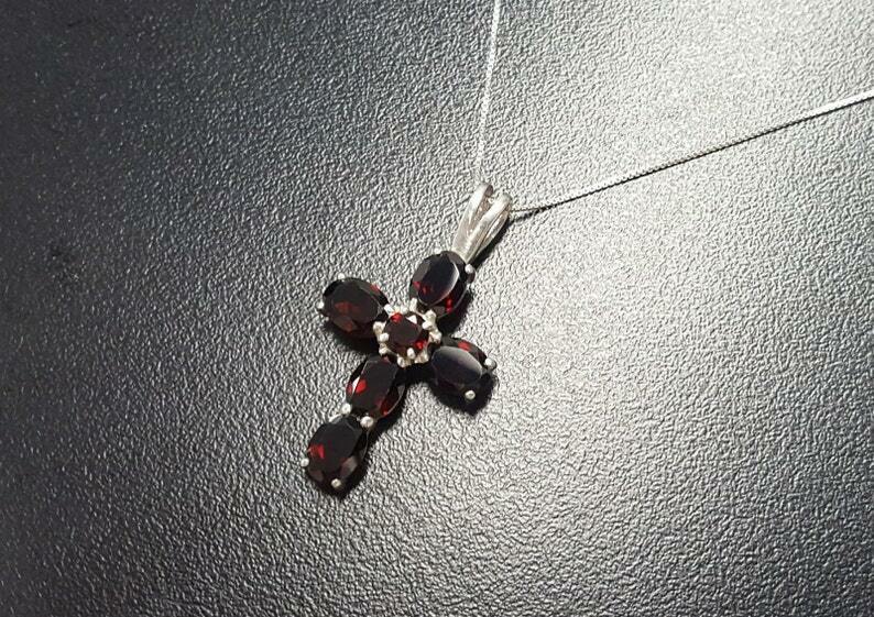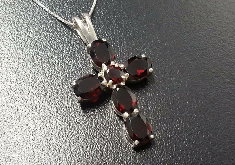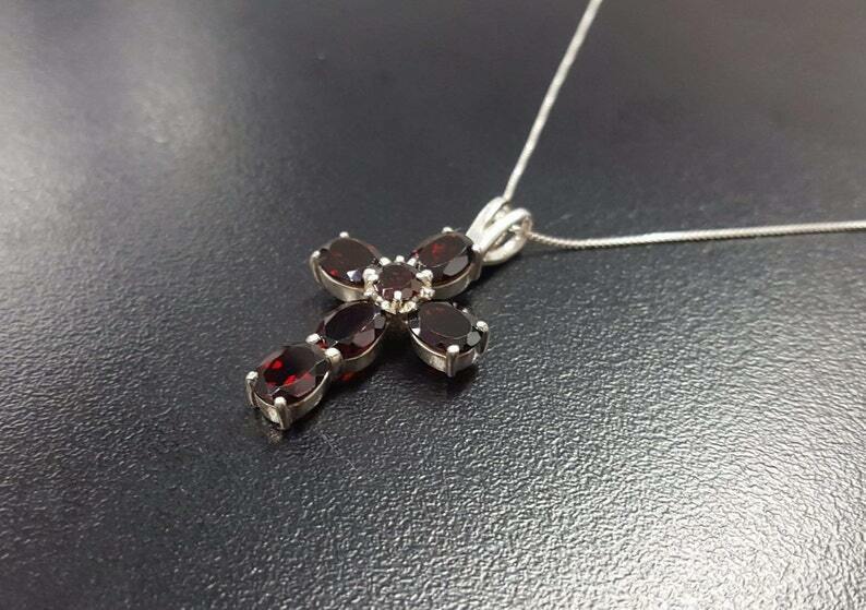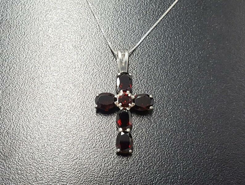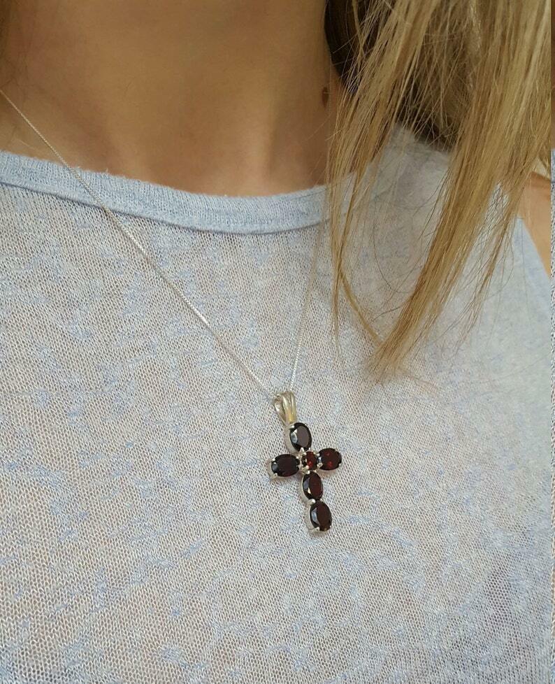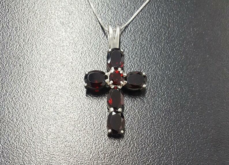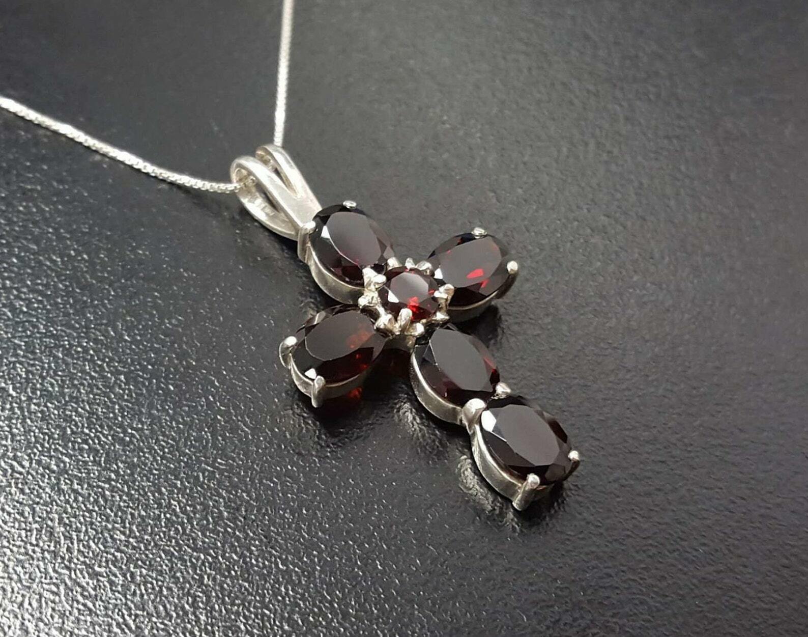 1.5ct Red Garnet Pendant Oval Cut Christ Cross 14k White Gold Finish NO CHAIN
