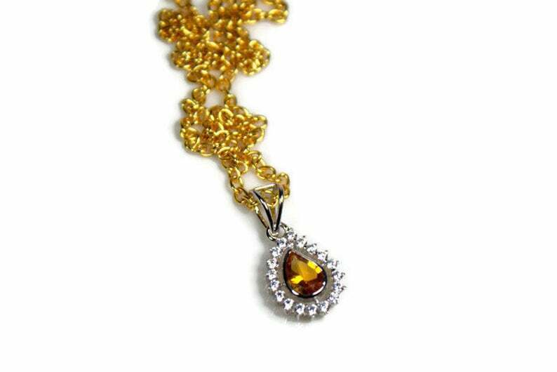 1.5ct Yellow Citrine Pendant Chain Pear Cut Diamond Halo 14k Yellow Gold Finish