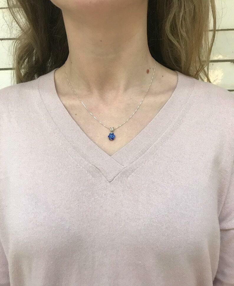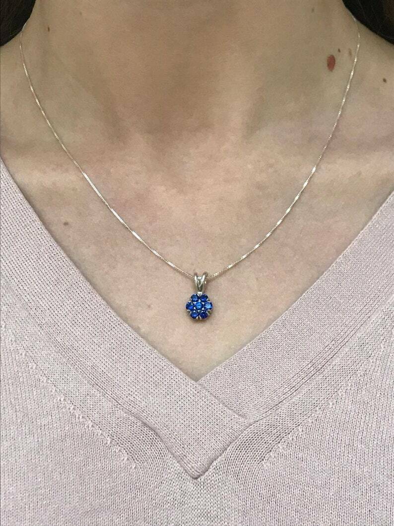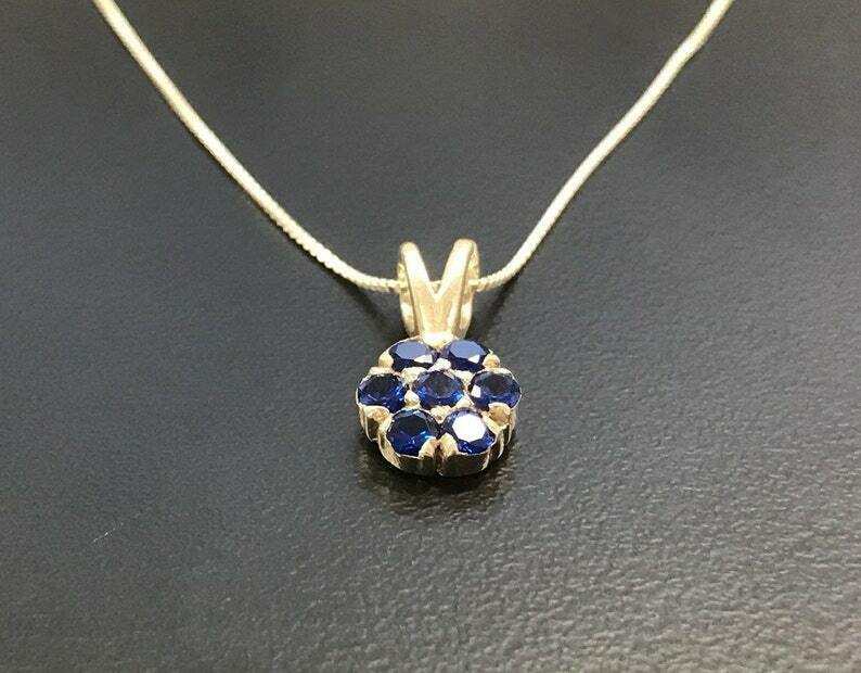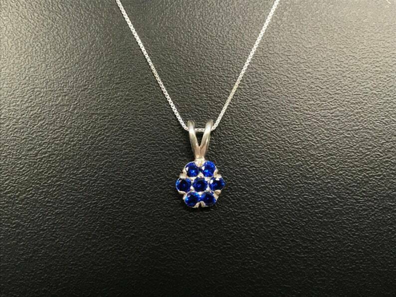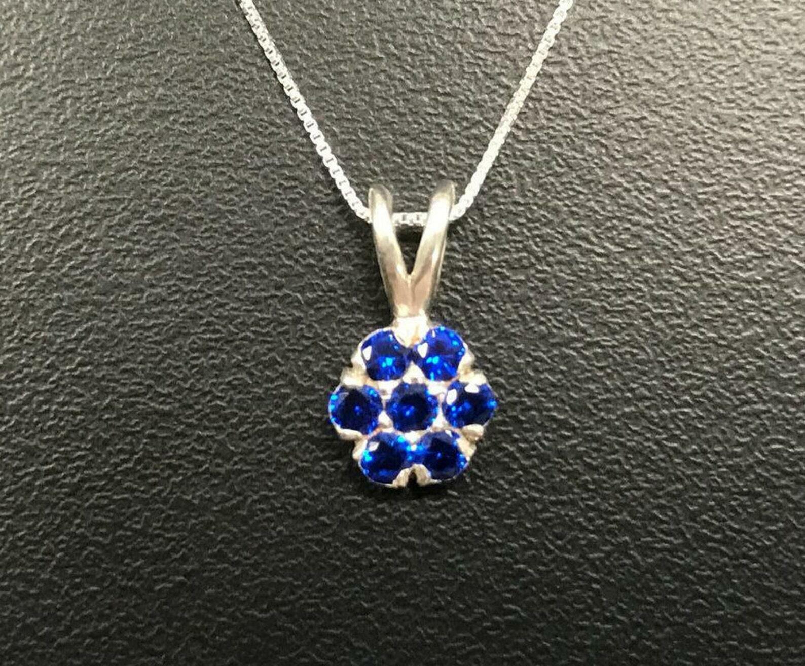 1.6ct Blue Sapphire Pendant Round Cut Cluster 14k White Gold Finish NO CHAIN