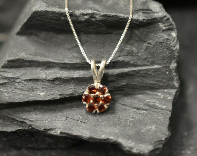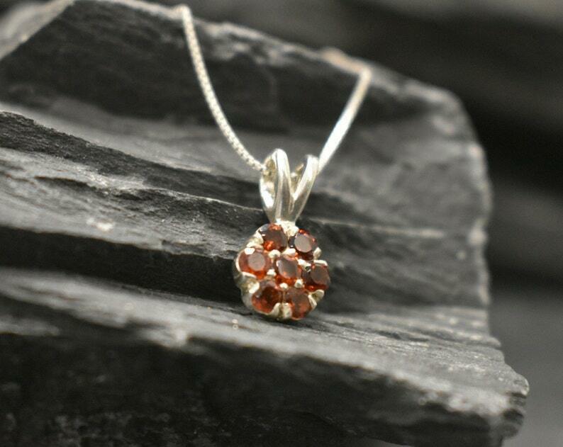 1.6ct Red Garnet Pendant Round Cut Cluster 14k White Gold Finish NO CHAIN