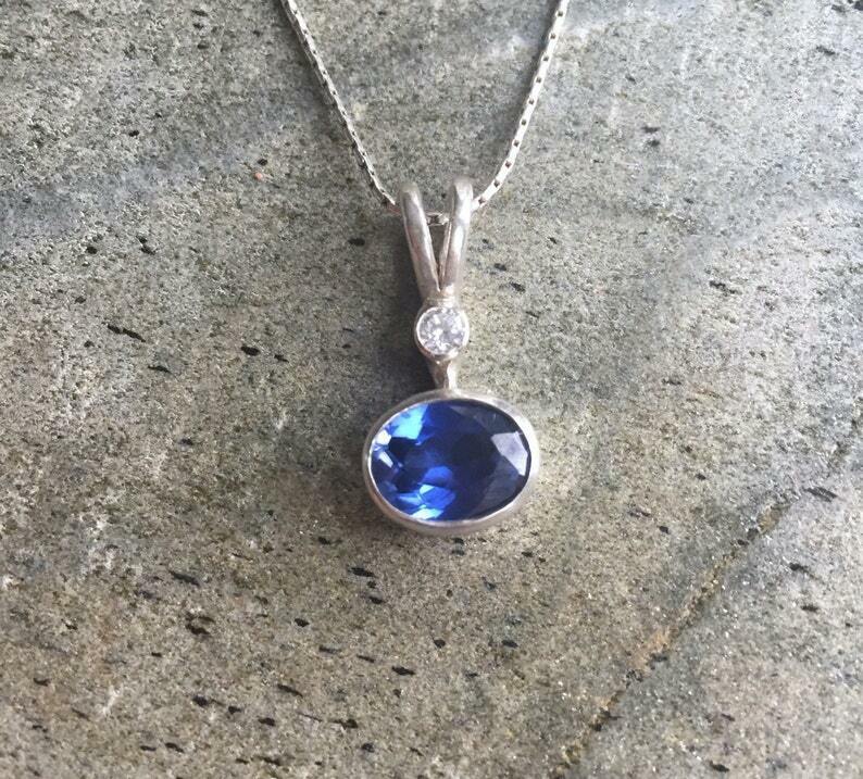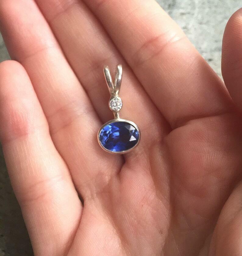 1ct Blue Sapphire Pendant Oval Cut Bezel Set Solitaire 14k White Gold Over NO CHAIN