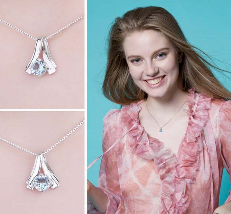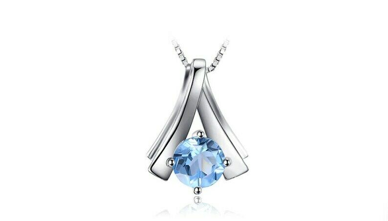 1ct Blue Topaz Pendant Round Cut Split Design 14k White Gold Finish NO CHAIN