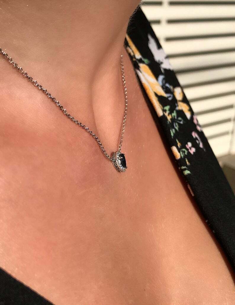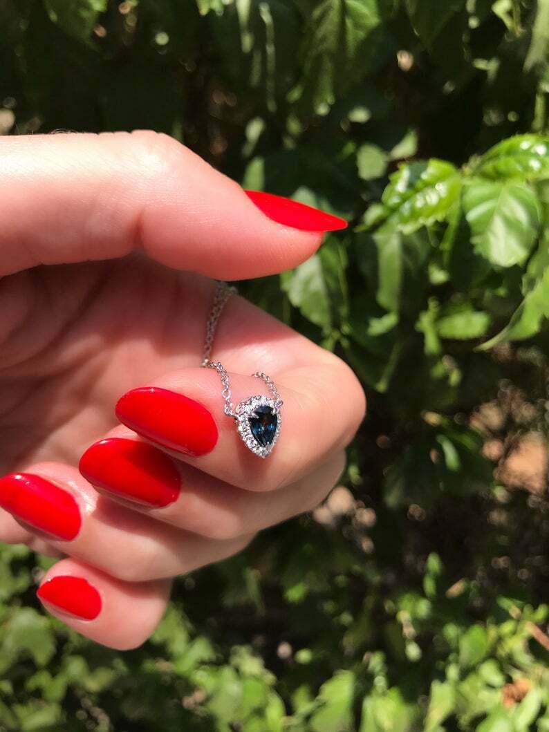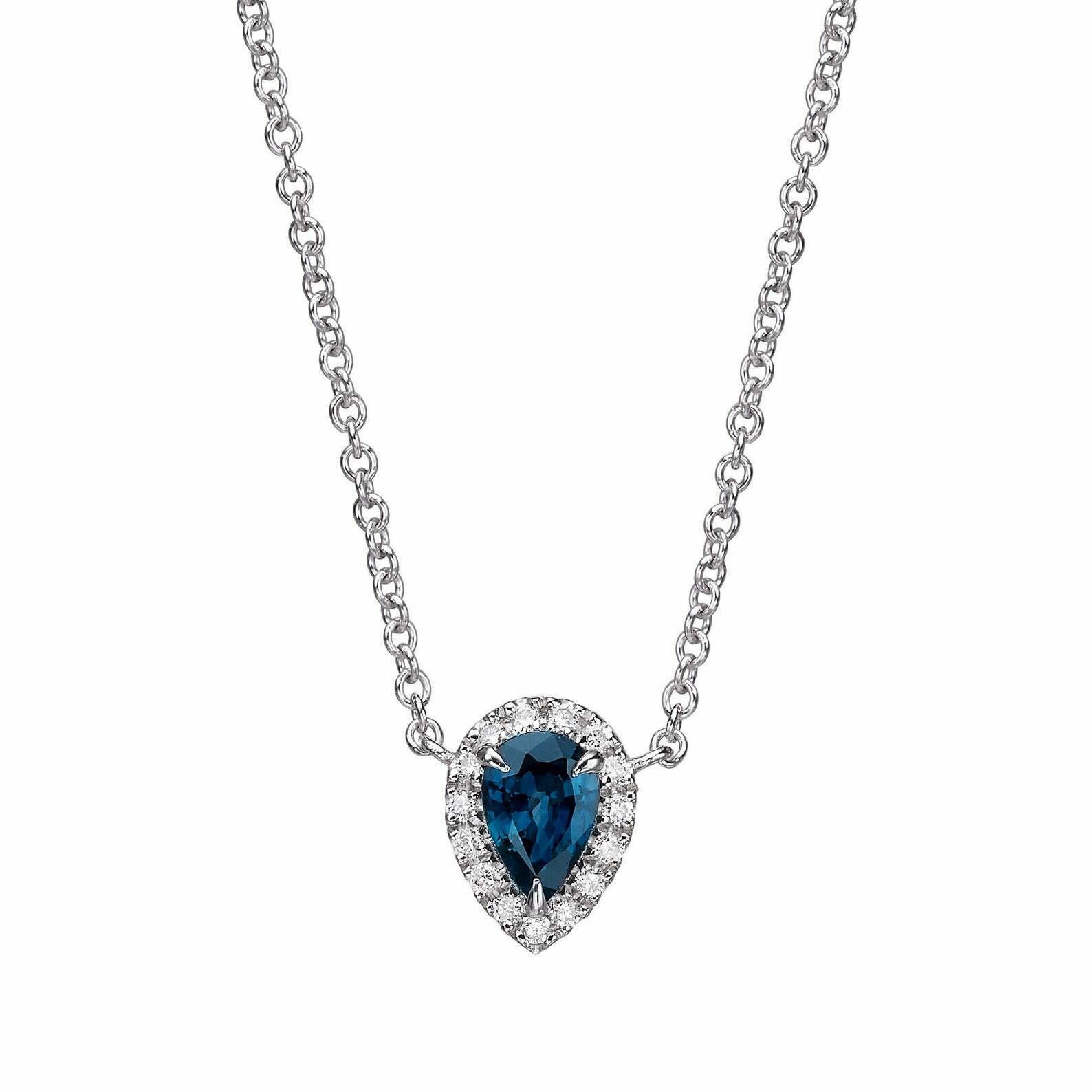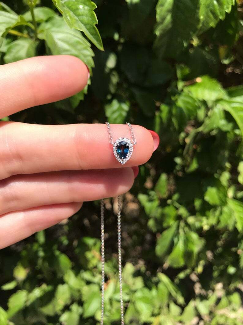1ct London Blue Topaz Pendant Chain Pear Cut Diamond Halo 14k White Gold Finish