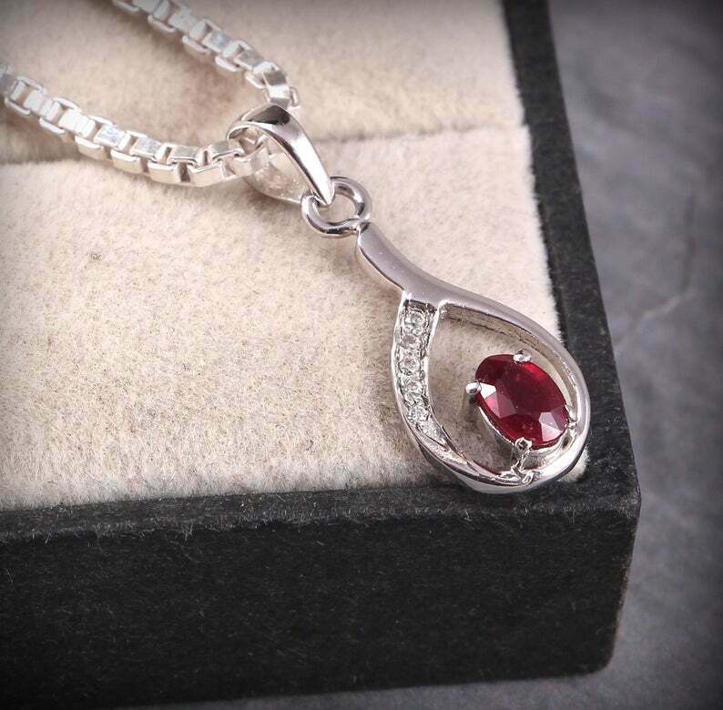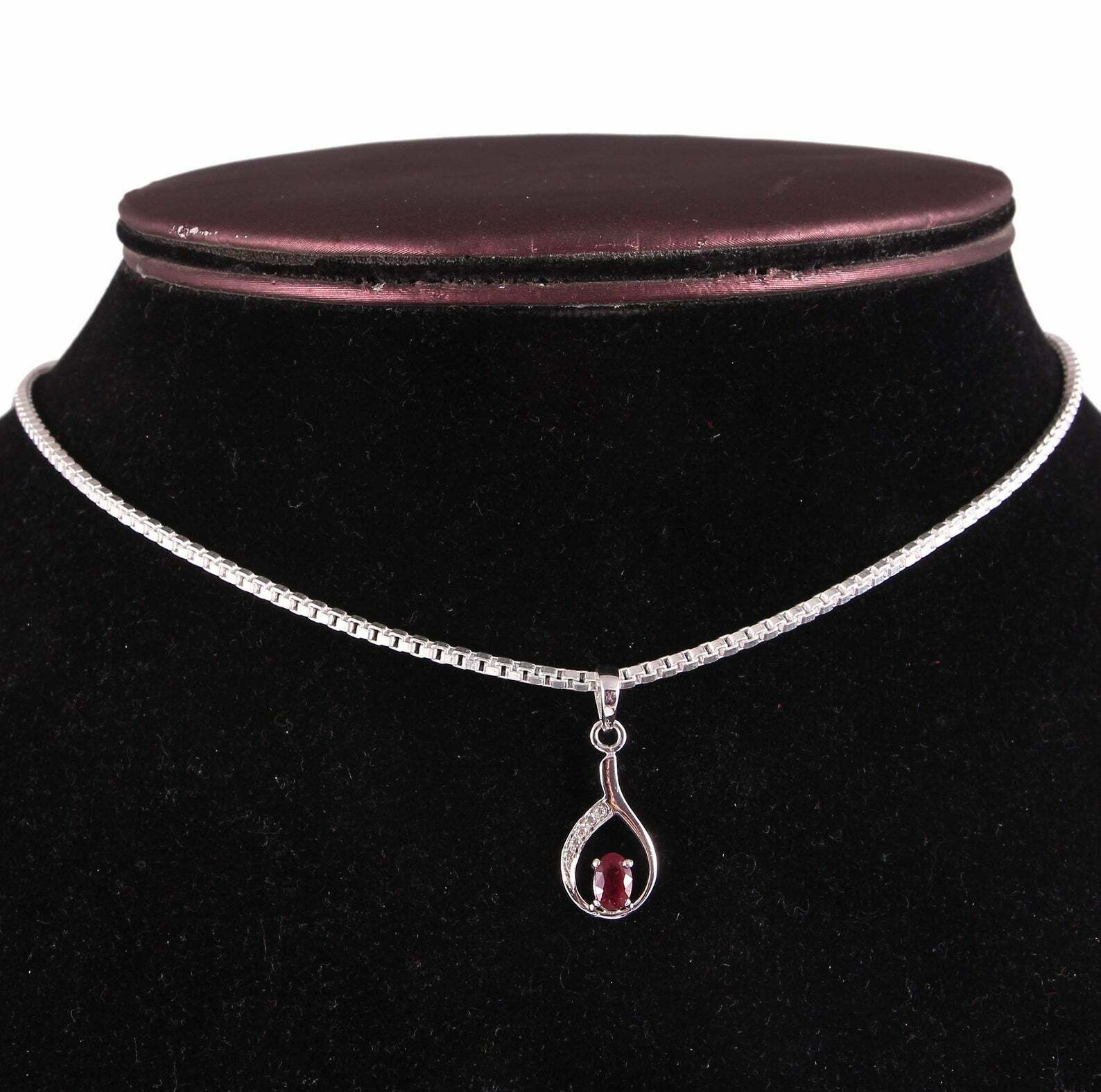 1ct Pink Ruby Pendant Oval Cut Tear Drop 14k White Gold Finish NO CHAIN