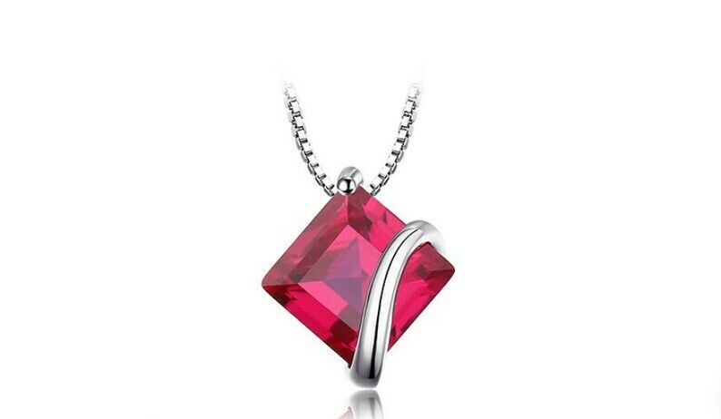 1ct Pink Ruby Pendant Princess Cut Stylish Solitaire 14k White Gold Over NO CHAIN