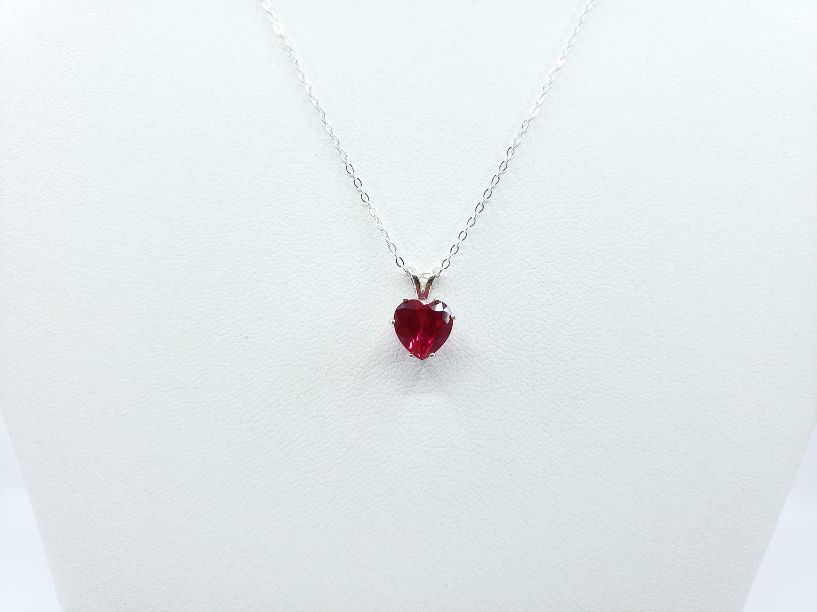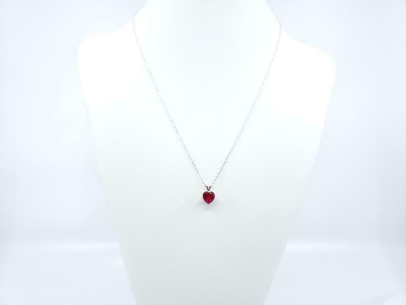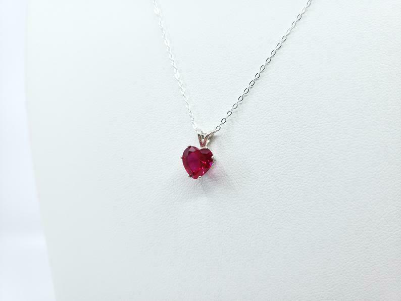 1ct Pink Ruby Pendant with Chain Heart Cut Solitaire Gift 14k White Gold Finish