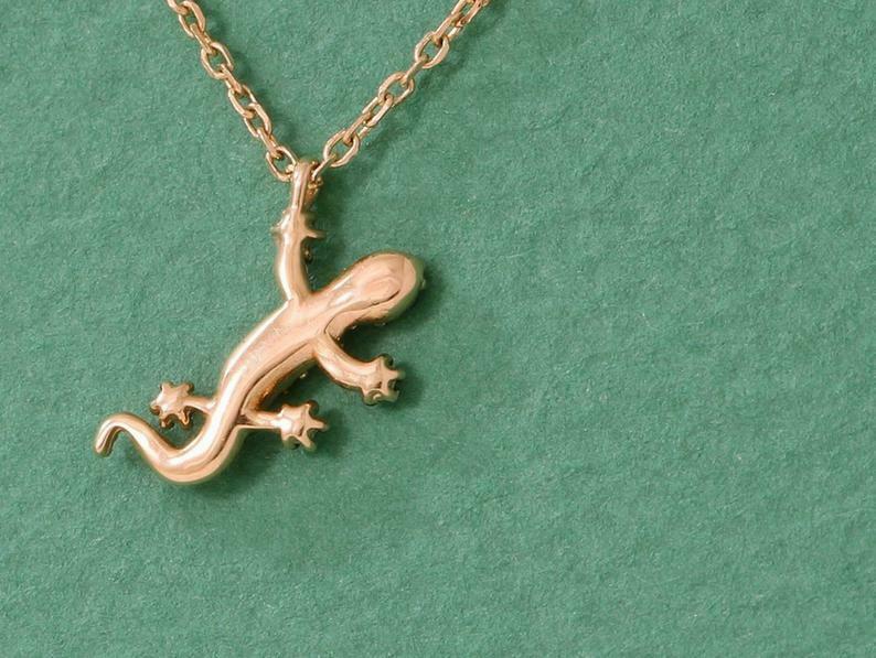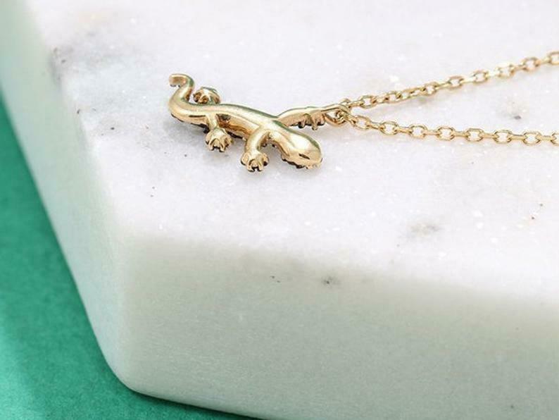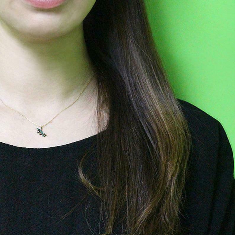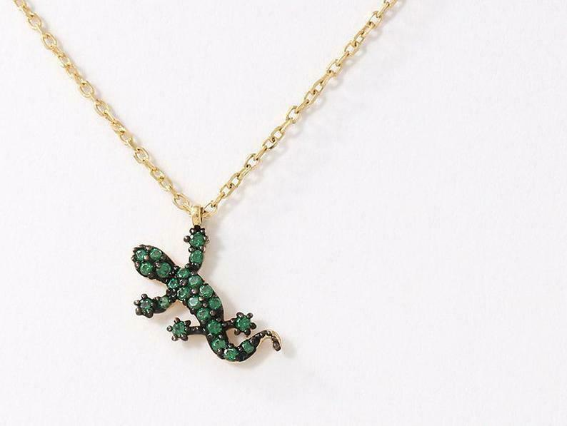1ct Round Cut Green Emerald Gecko Lizard Pendant with Chain 14k Yellow Gold Over