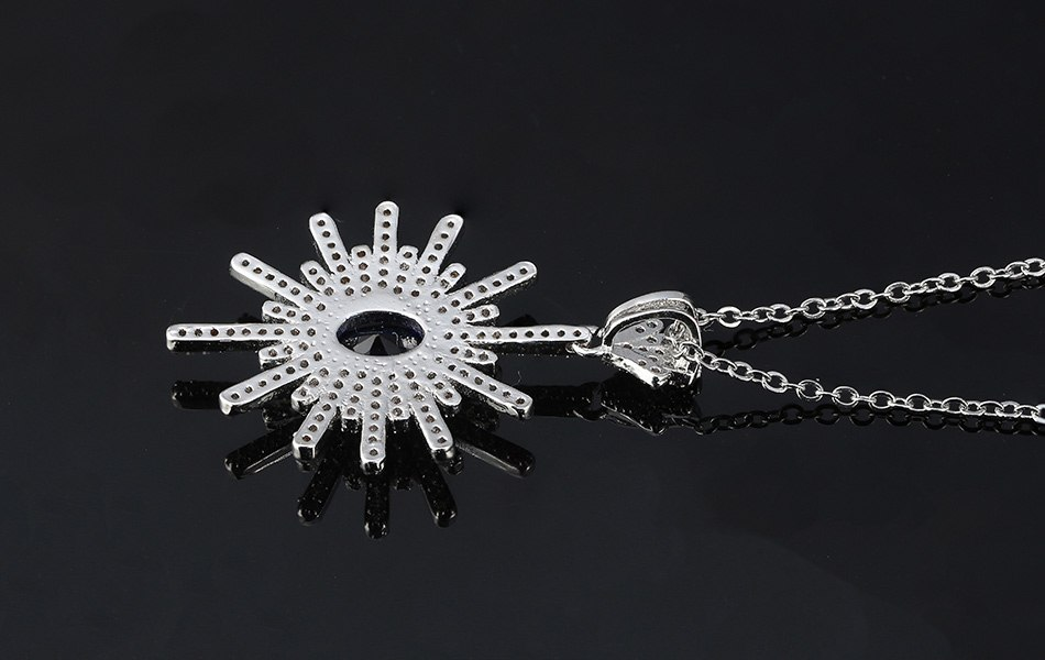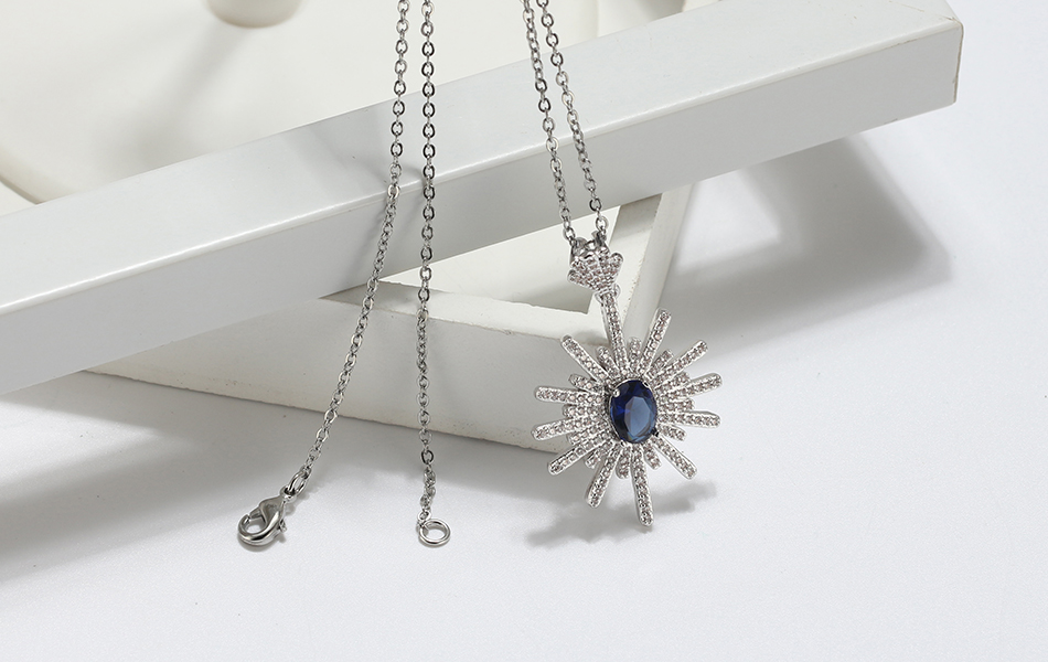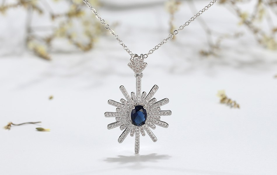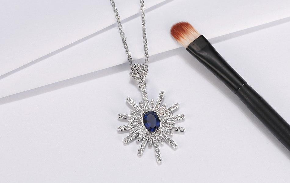 2.1ct Oval Cut Blue Sapphire Pendant Chain Floral Design 14k White Gold Finish